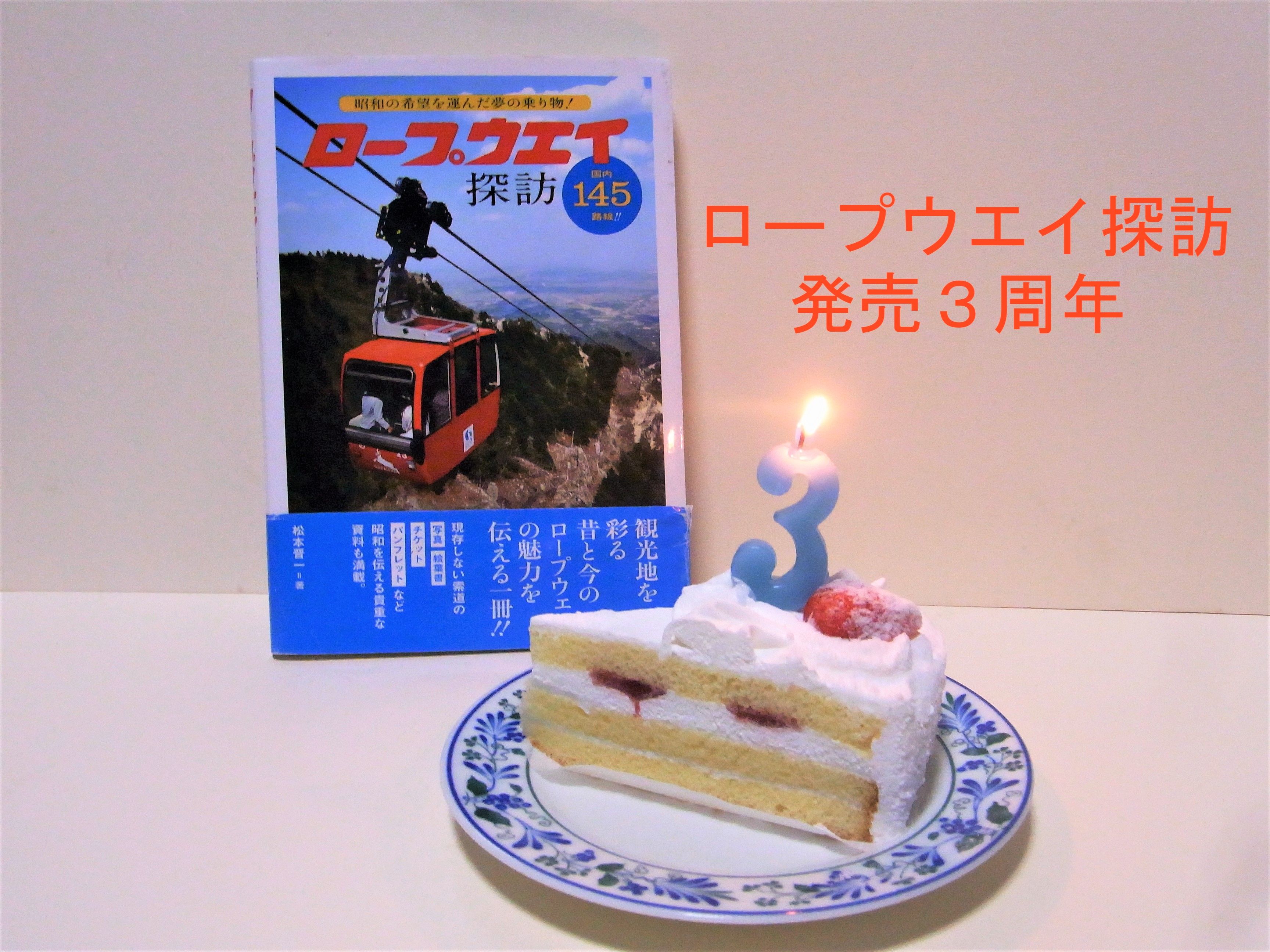 7月7日は僕にとっては七夕ではなく、「ロープウエイ探訪」の誕生日なのです。発売からあっという間に3年が過ぎました。この本が名刺代わりとなり、各所でいろんなご厚意を頂きました。それは今でも続いております。全国制覇したわけでもなく、ただロープウェイが好きなだけの素人が、こんな本を出せたことが奇跡でしたが、どこかで誰かがロープウェイの魅力に気づいてくれるきっかけになっていれば幸いです。