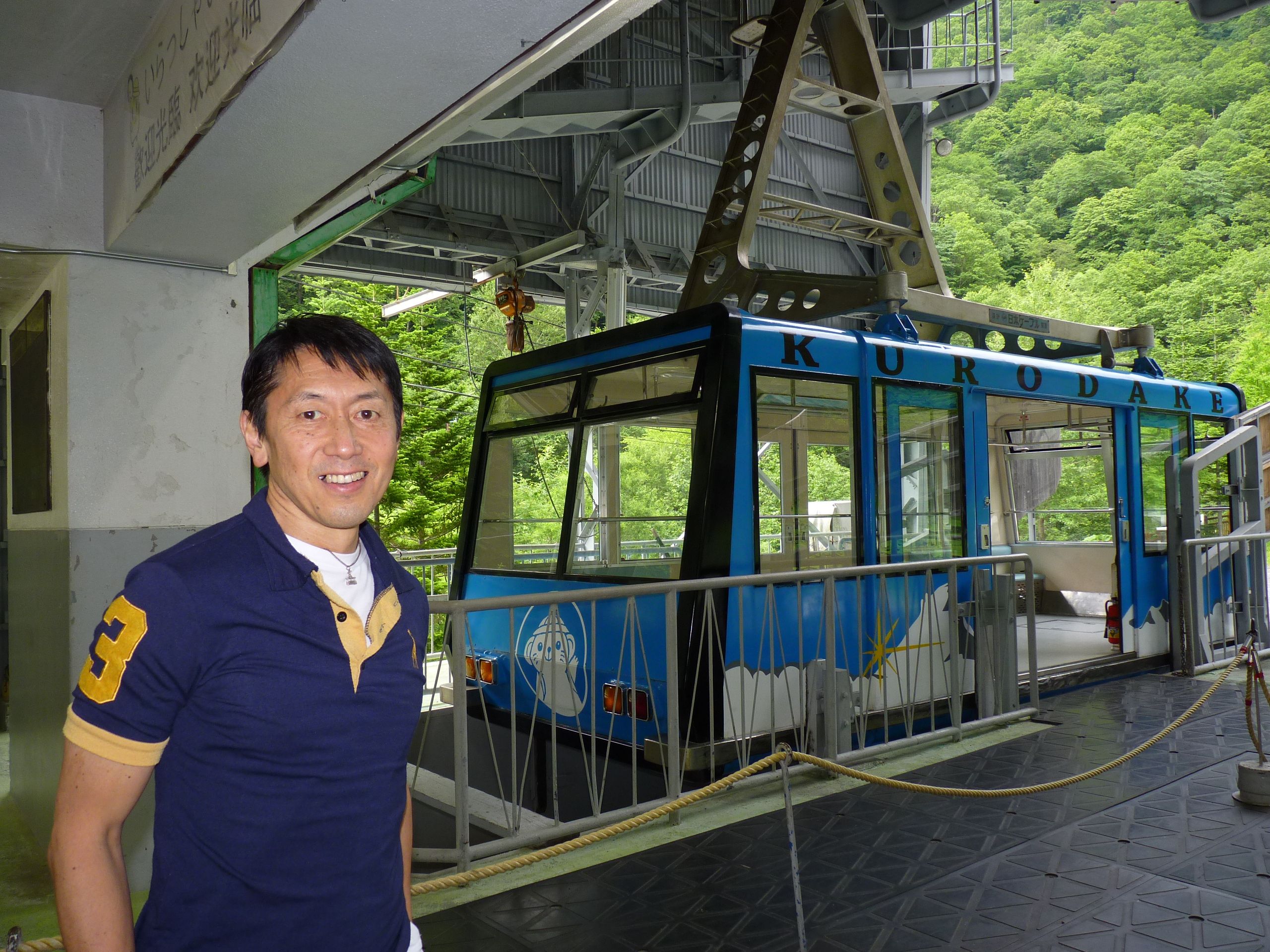 前日、初めて黒岳ロープウェイを楽しんだ自分は、そのまま層雲峡の温泉宿に宿泊。朝5時に起きると、昨日より雲が少ない空模様。5時の試運転の発車ベルが聞こえたので、6時の始発前に駅に行ってみると、昨日は見えなかった山頂駅まで見渡せる天気。もうこれはもう一度乗るしかない。でも午前7時に所長の山崎さんが旭岳ロープウェイまで自動車で連れて行ってくれることになっているので、1時間で2往復して、昨日よりはましな撮影ができ、また景色もちゃんと見れたのでラッキーでした。宿の食事が7時からだったので、急いで食べて、7時半に山崎さんの自動車で旭岳へ向かう。2時間弱で到着。そこで山崎さんの顔見知りの従業員、国井さんに面通しをしていただき、こちらでもいろいろとご親切に対応して頂きました。国井さんの情報では午前中は天気は持ちそうということで、旭岳が見えているうちに2往復、ビデオを写真撮影をさせてもらいました。案の定、午後になったらだんだん雲が多くなり、山頂の方は見えなくなってきました。空港行きのバスが3時30分なので、それまで山麓付近で撮影などをして、国井さんが旧搬器がある場所に置いてあるという情報を下さり、そこまで連れて行ってくださいました。僕の大好きな古いロープウェイにも会えてゴキゲンです。たくさんの楽しい思い出を胸に、北海道索道まつりは終了しました。