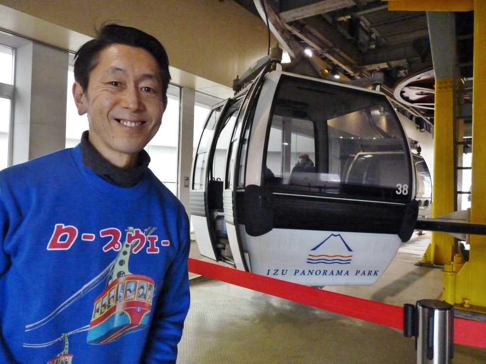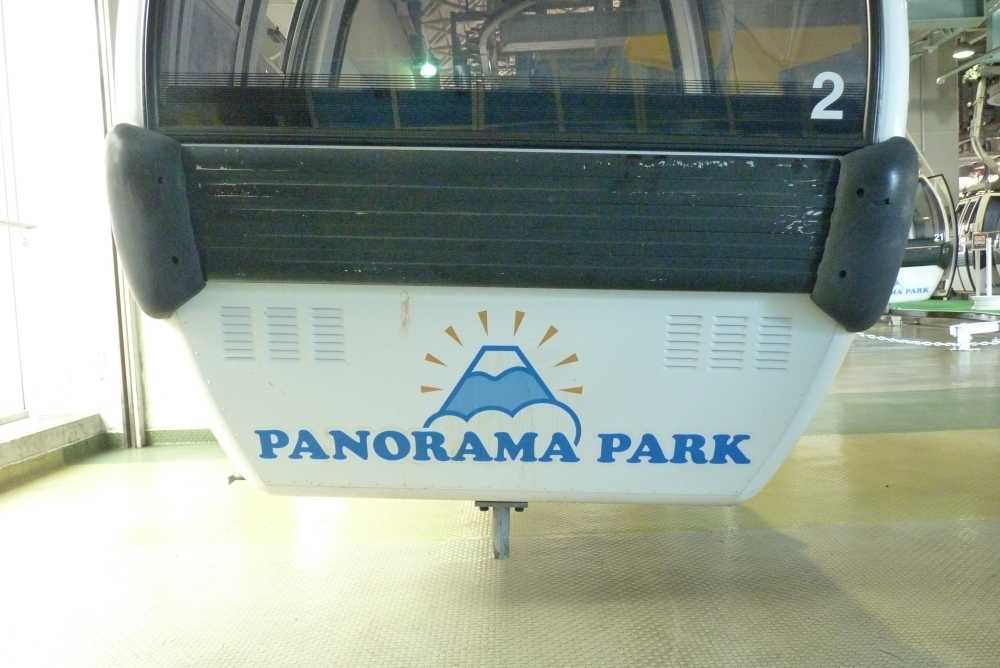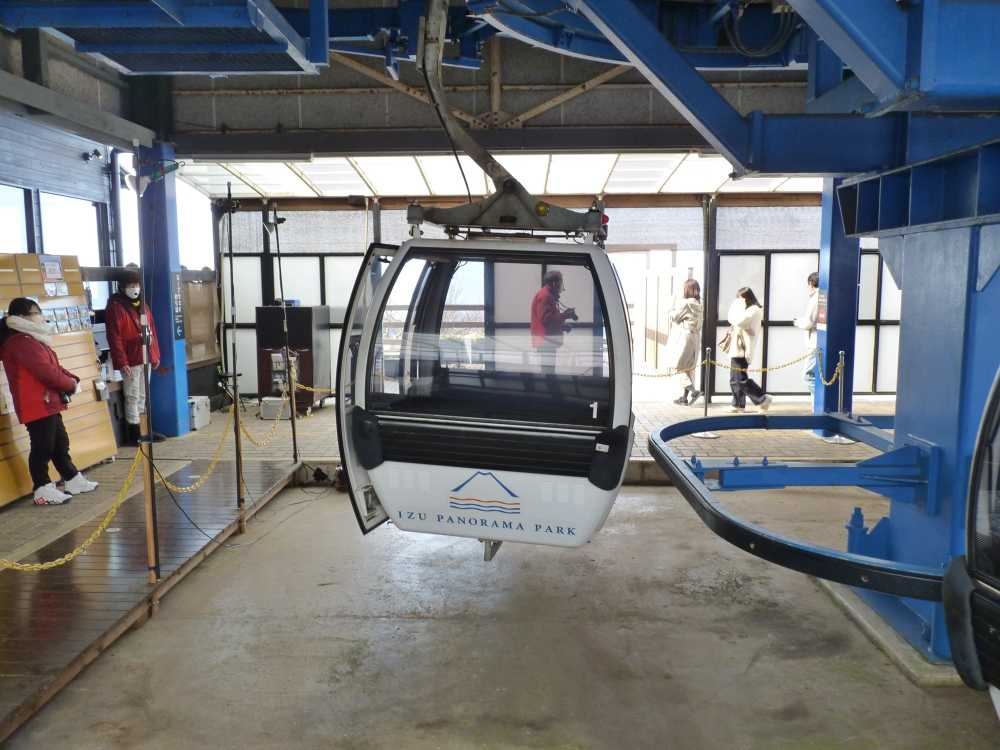 乗り込む前に山麓駅でしばし撮影。搬器のロゴが以前とちがうような気がする。「伊豆パノラマパーク」になってからロゴも新しくなったのですね。