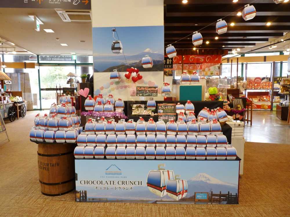 このディスプレイもナイス。ロープウェイの搬器をイメージしたお菓子のお土産品はどこも定番で、自分は蒐集していますが、長年見た中でもこれは優秀なデザインの上位に入ると思います。ロープウェイファンとしてはリボンのデザインが余計ですが。