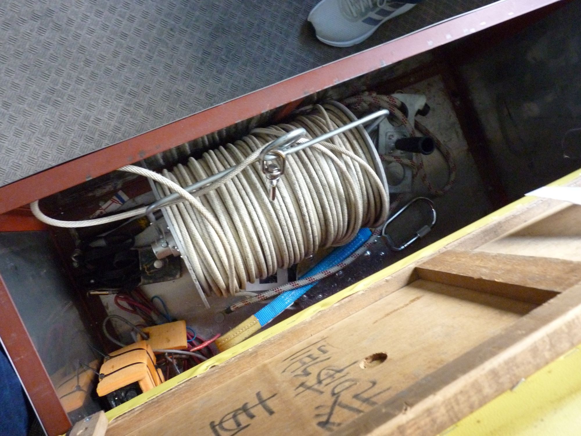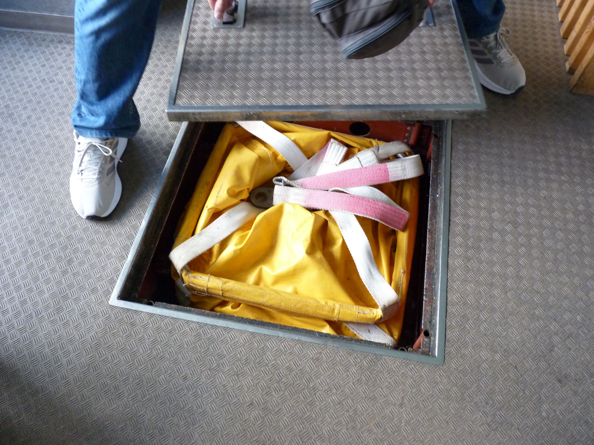 床の蓋をあけたら応急下降用の救助袋がそのまま入っているじゃないですか。