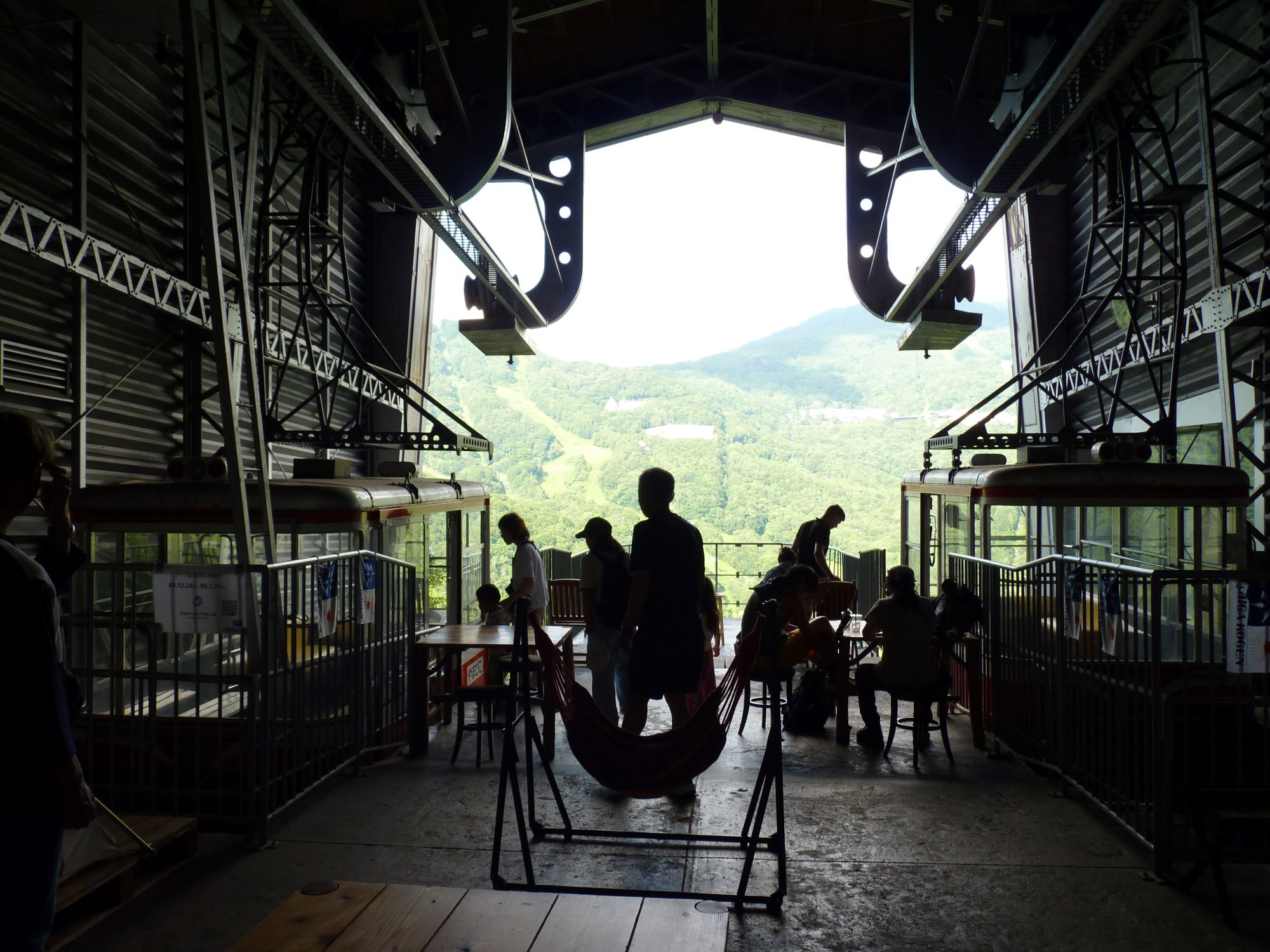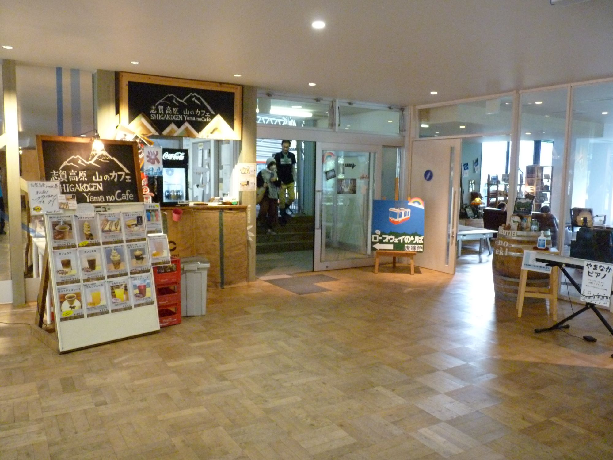 入って左側に旧志賀高原ロープウェイのホームがあり、テラスとして開放されていました。無料で入れます。かつての事務所かチケット売り場だと思われるところはコーヒーなどを売る店になっていました。