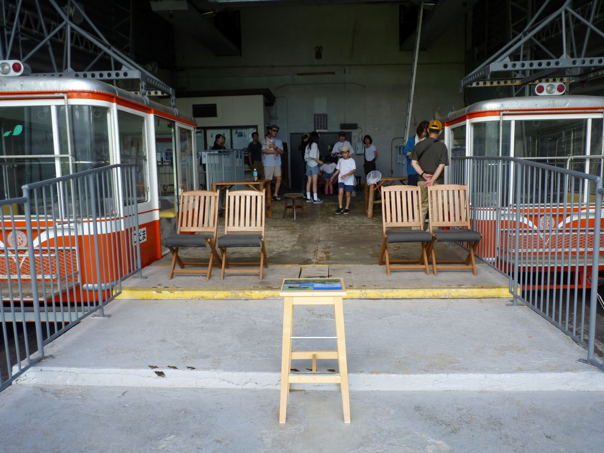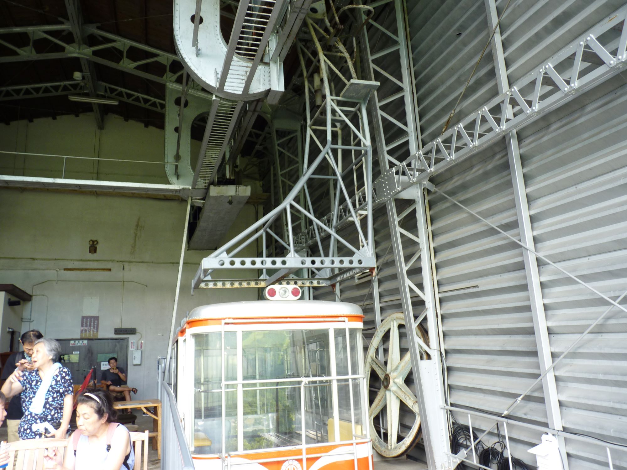 やまびこ号の方は懸垂機が搬器から外されていました。たぶん2台吊るすと重量の問題があるのではないか?