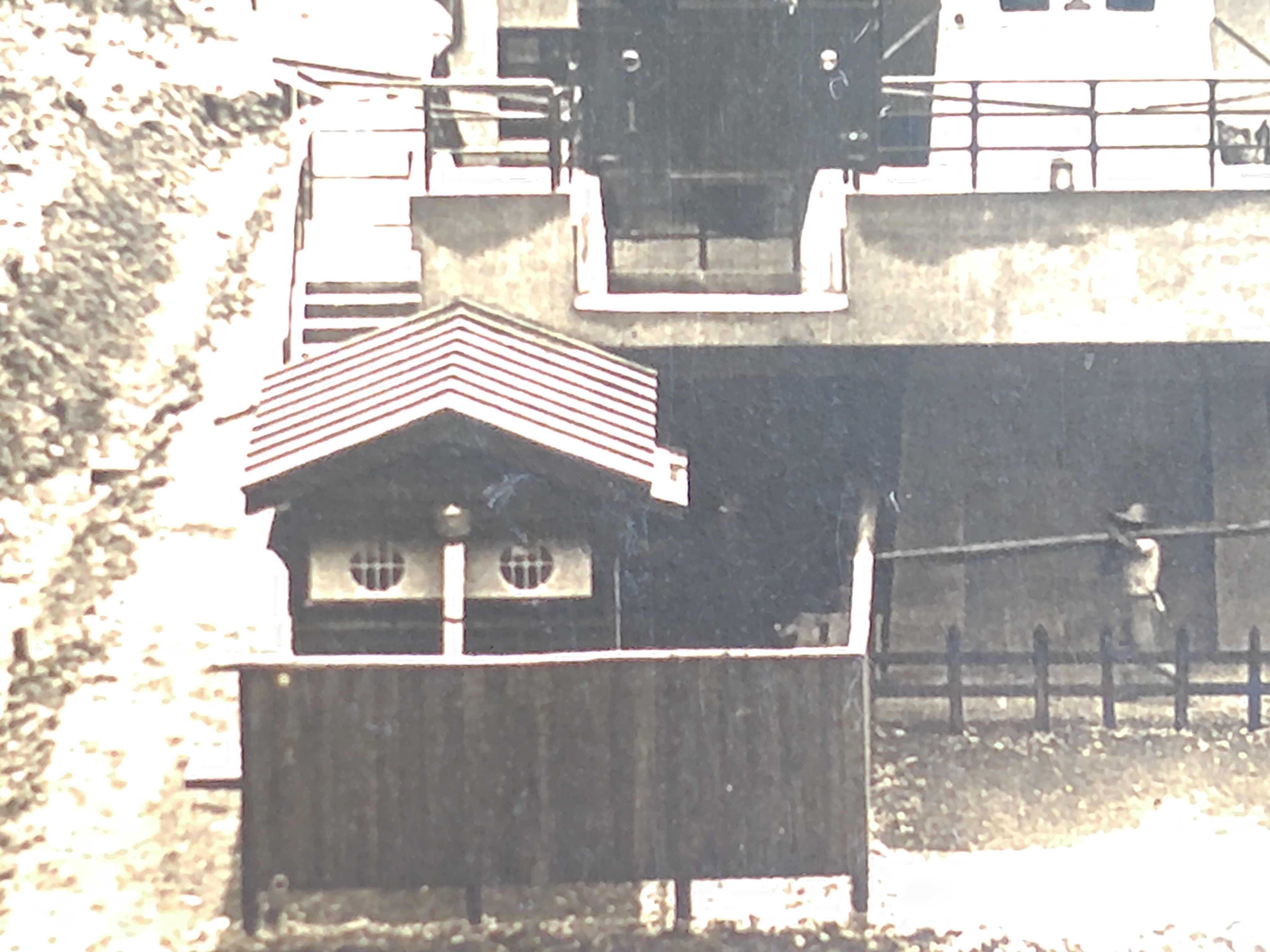 ホームの前はトイレでしょうか。竿のような物を持っている人がいます。