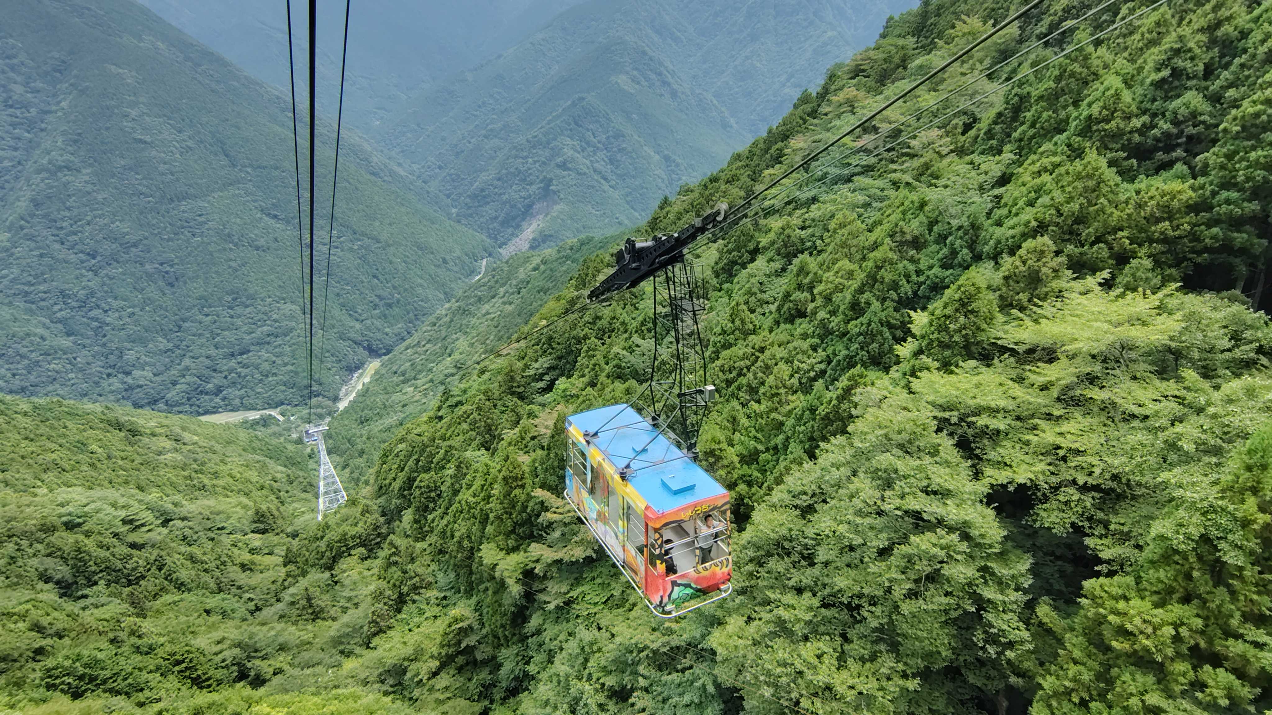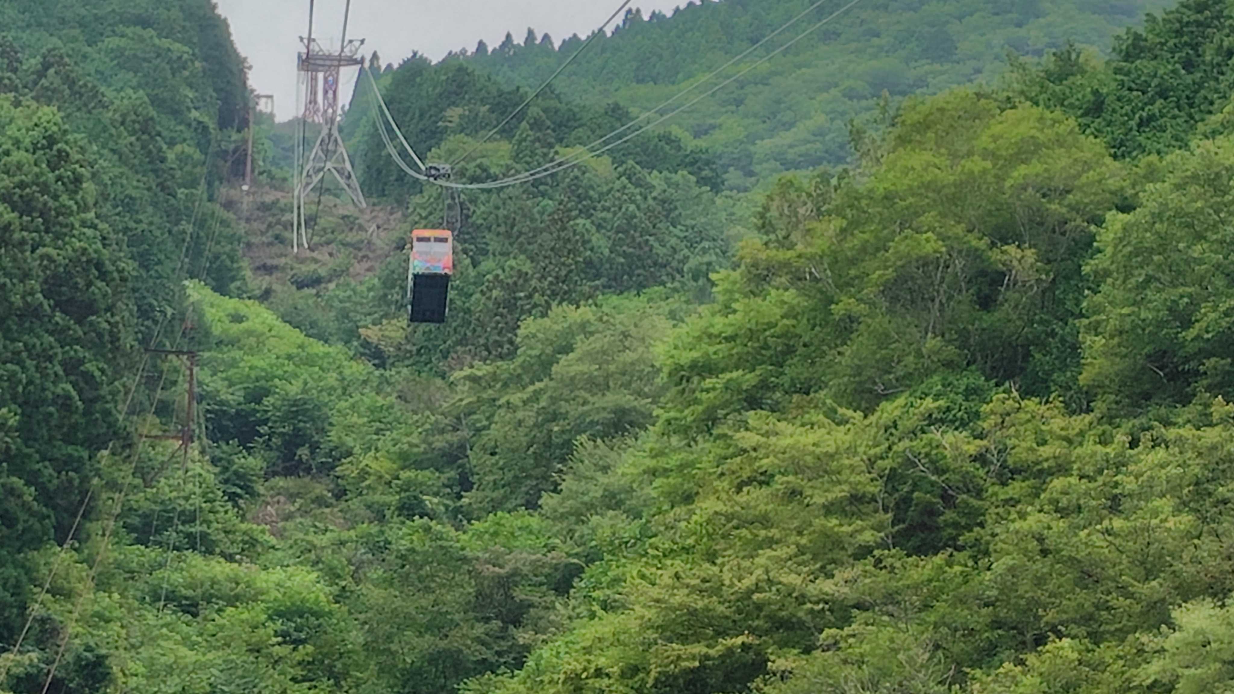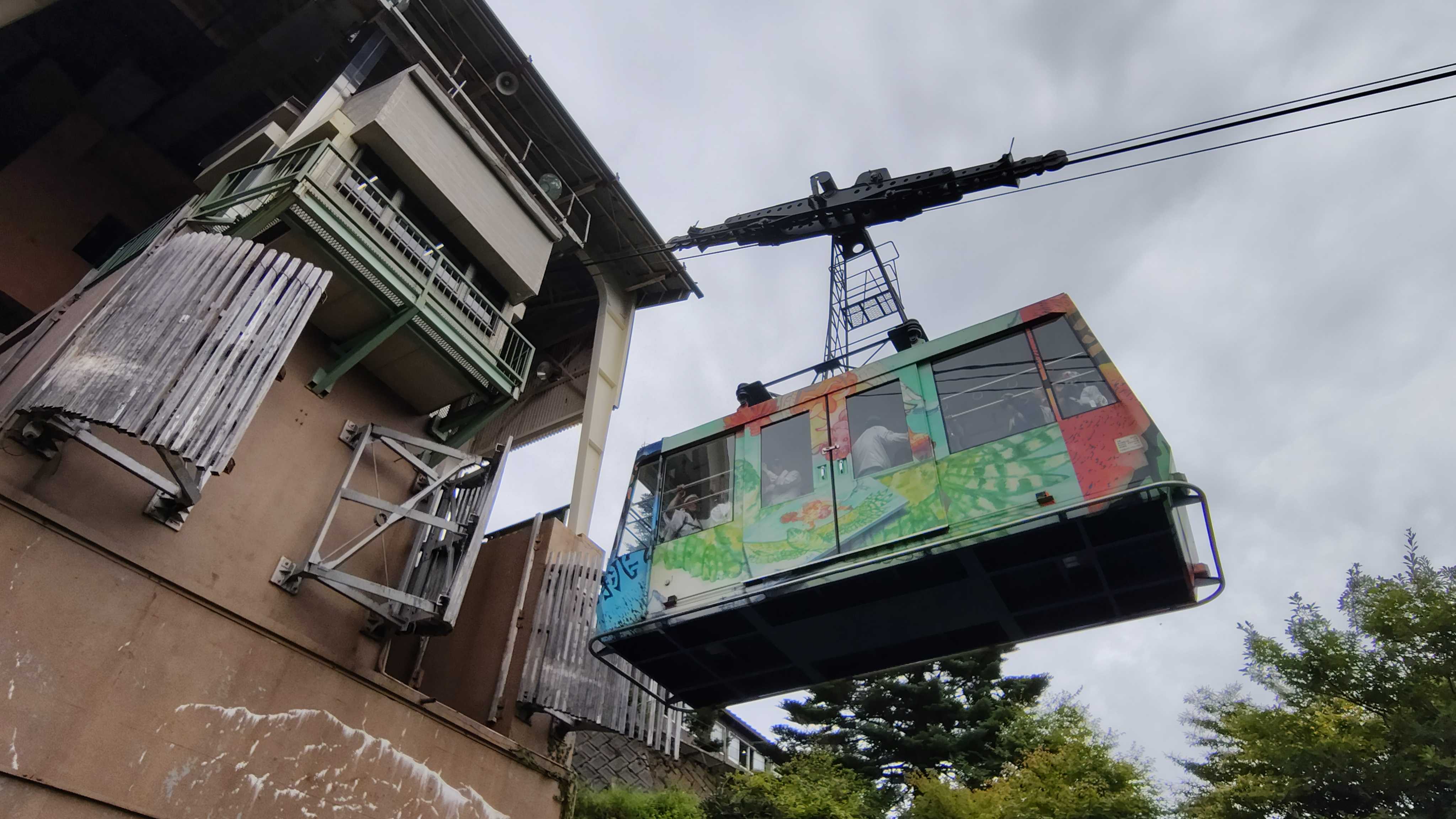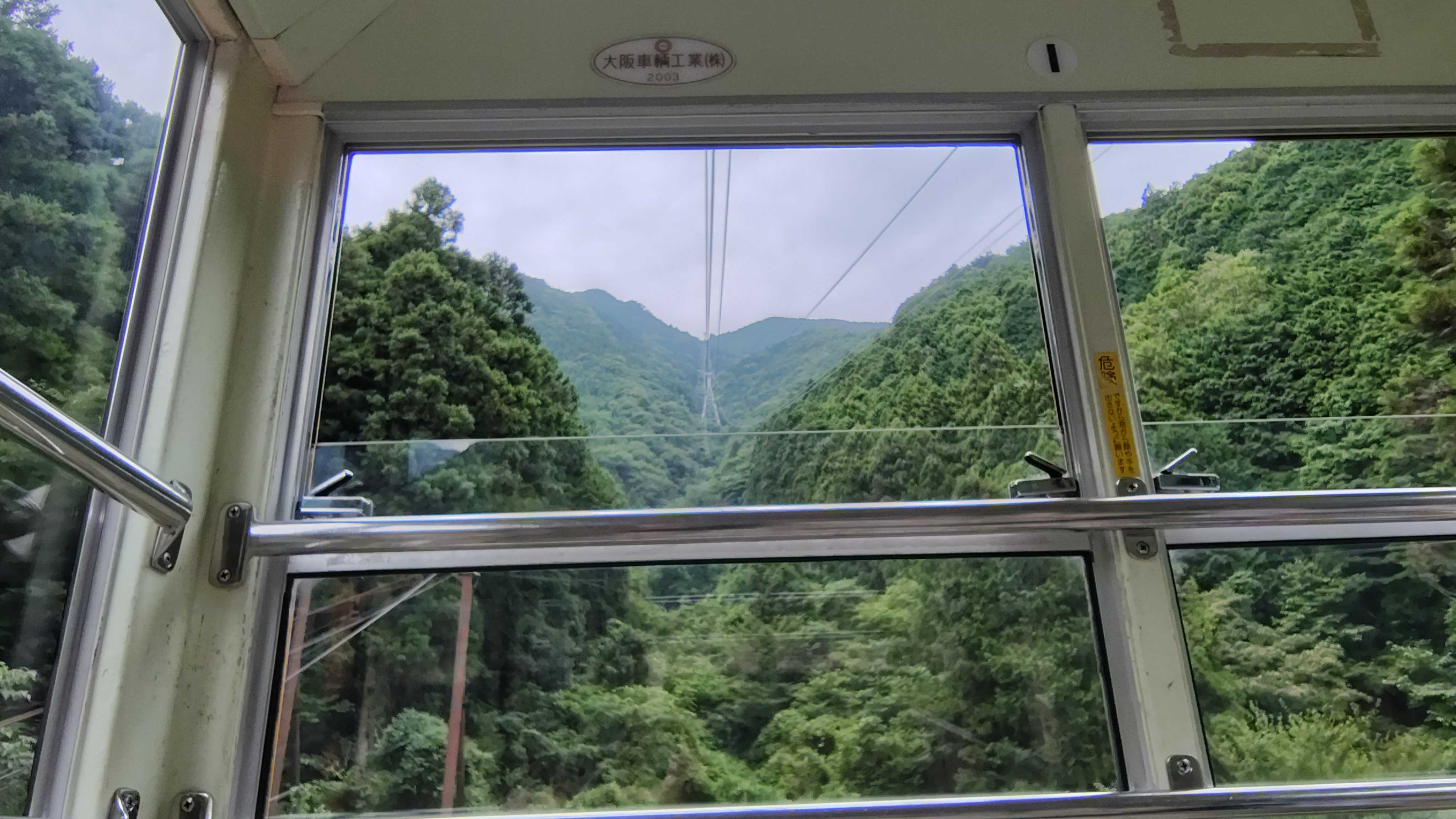 さすが日本で3番目の高低差のロープウェイ。ここからは山頂駅は見えません。