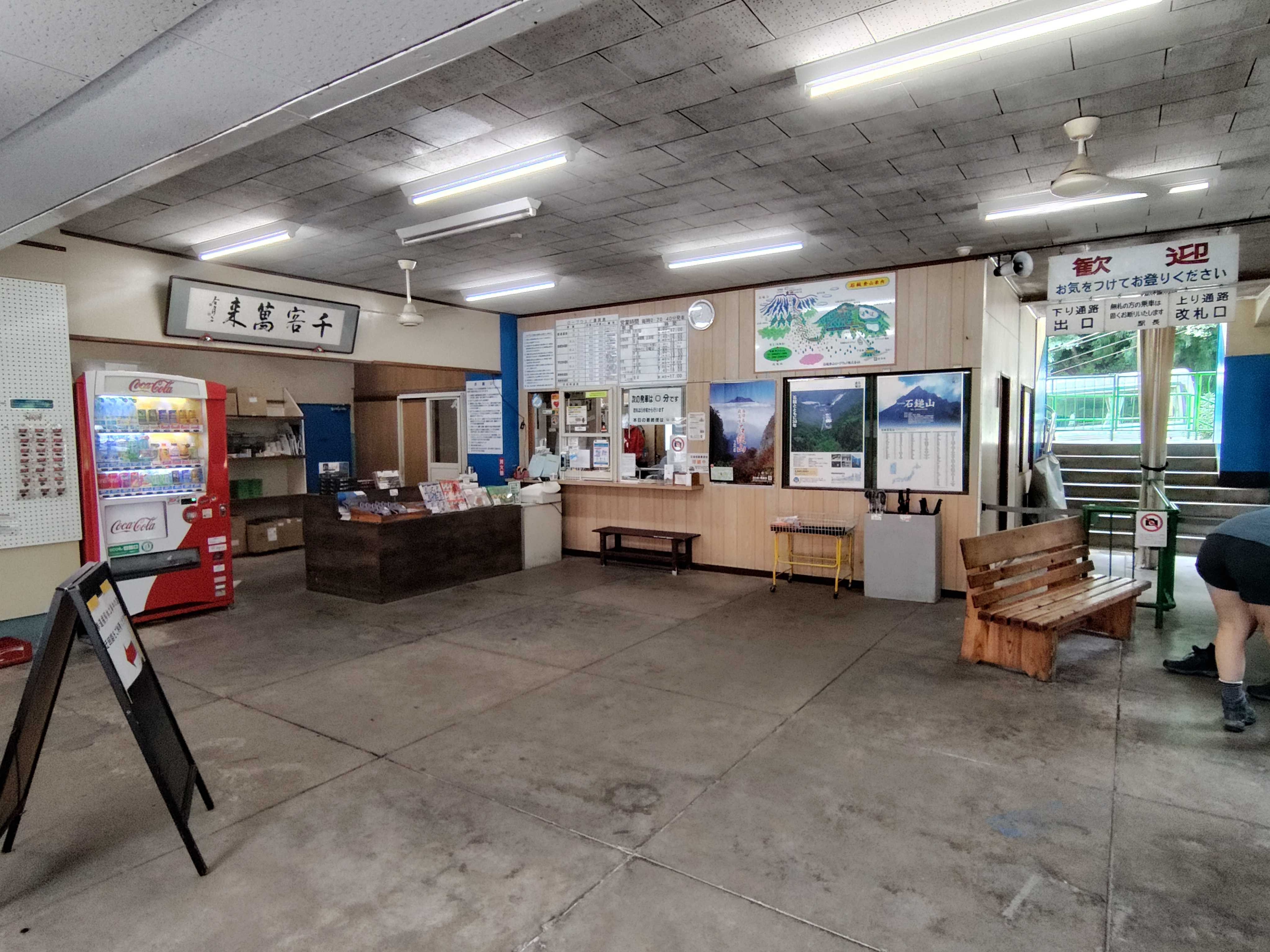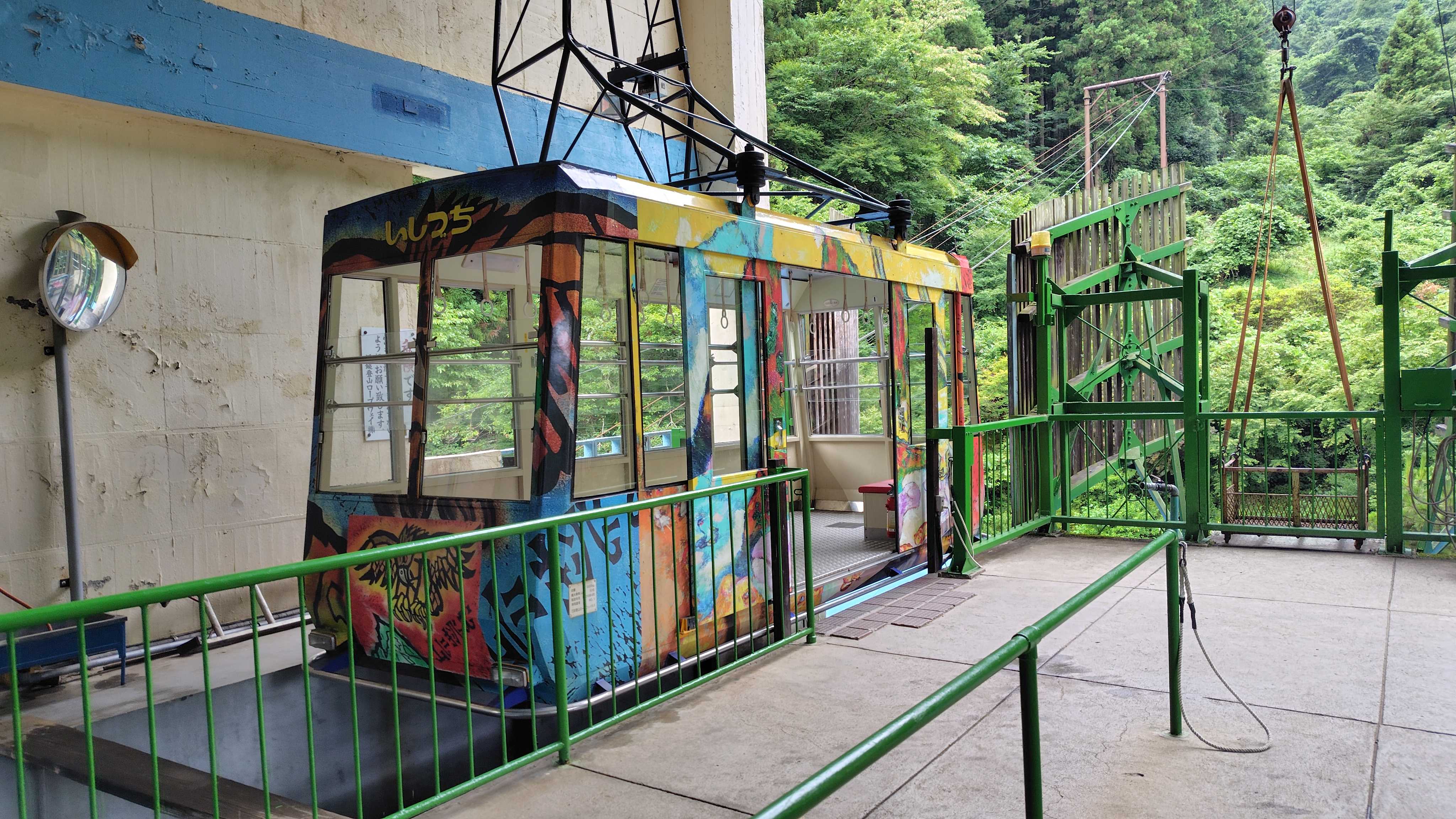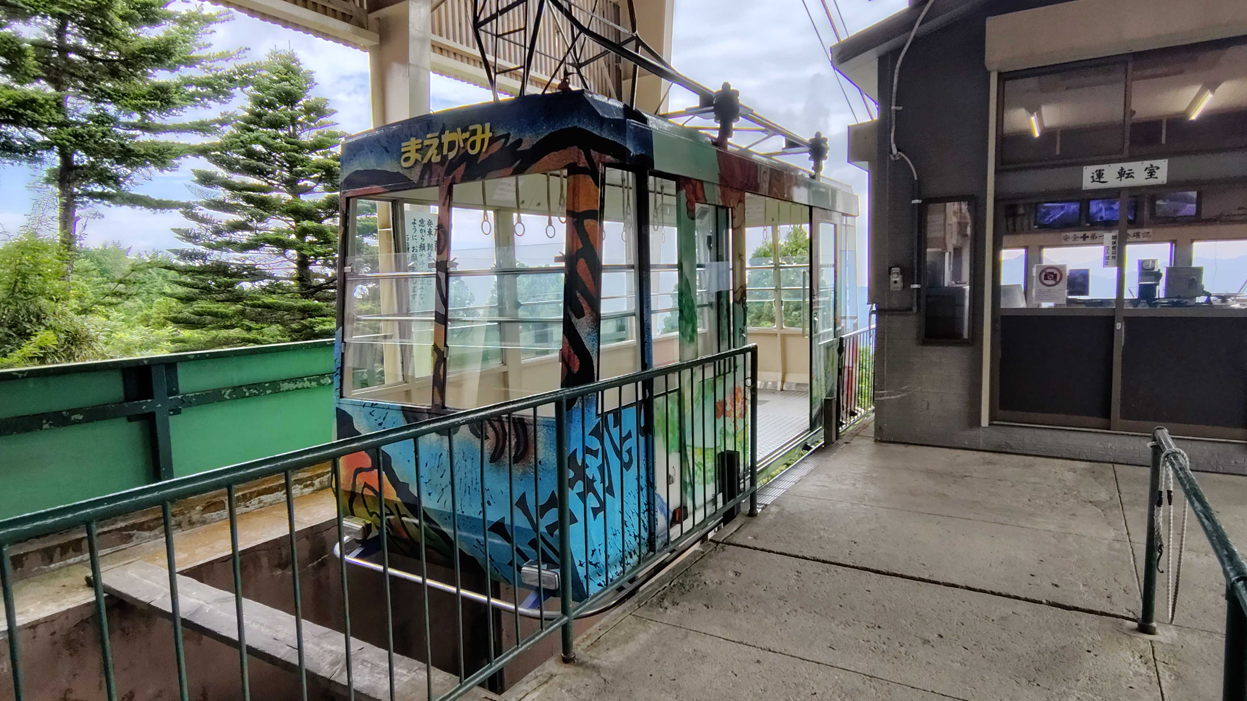 山頂の成就駅に到着。ホームで一生懸命に搬器を撮影していたら従業員さんが扉を閉めてくれました。