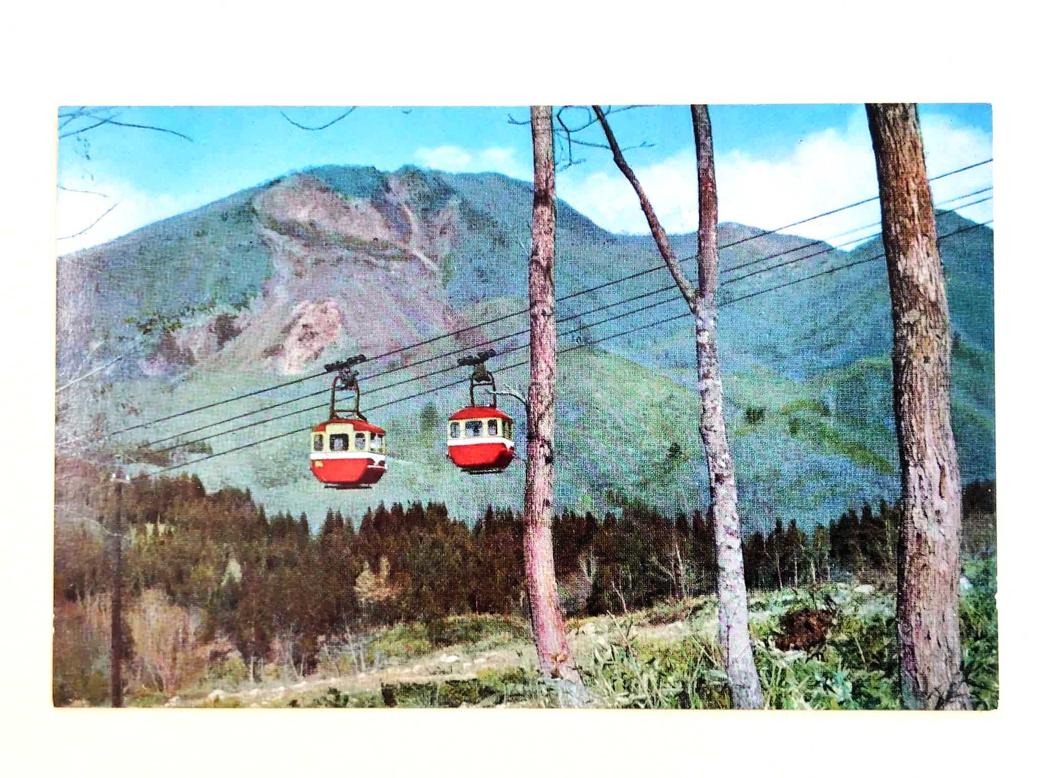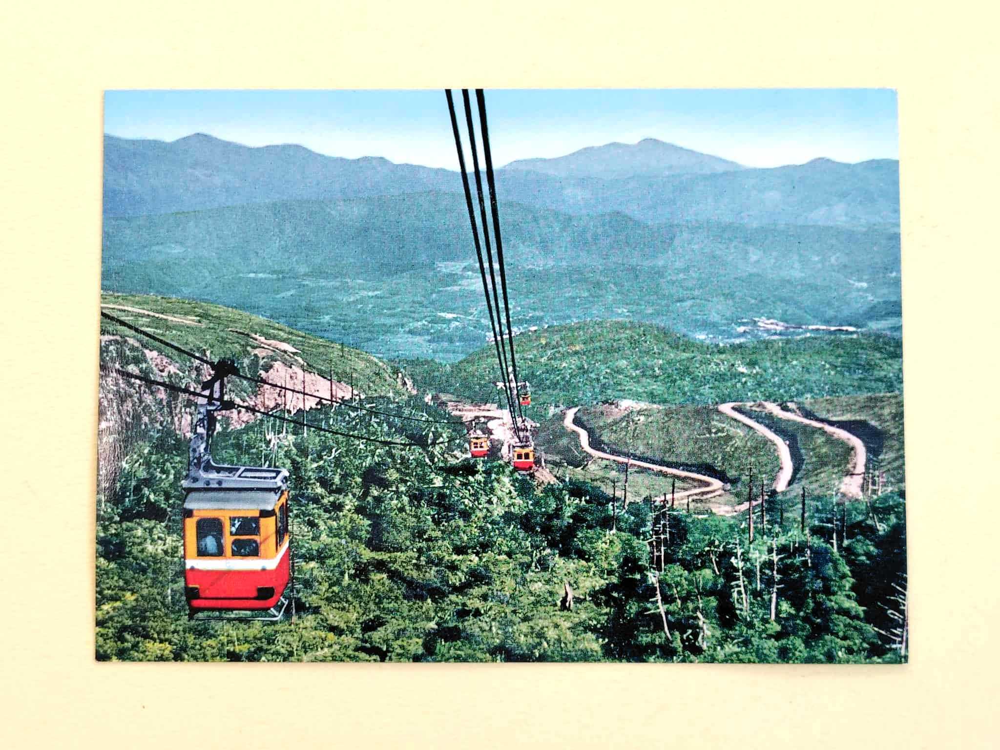 これは蔵王登山ケーブル(現在の蔵王スカイケーブル)の絵葉書。こういう木立ちの向こう側に見える構図の絵葉書は初めてみました。