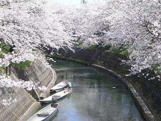車からカメラを出して走りながらパチリえっ?? どなたか存じませんが写っていました二枚目をパチリ交通量が結構あるので走りながら2枚がやっとでした富山の松川べりの桜今が見頃です 満開御礼!!