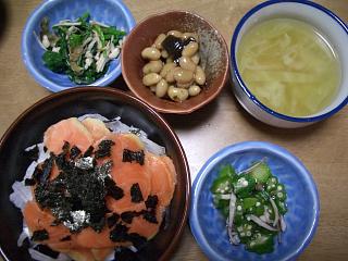 ほうれん草とえのきの鰹節かけ大豆と昆布の煮物新玉ねぎの酢ものサーモンのせイカとオクラの和え物春キャベツとコーンの鶏がらスープ季節の変わり目私も体調崩し気味です風邪気味な我が家の子供たちにお野菜たっぷりヘルシーメニューで乗り切ろう!!