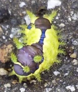 良いお天気にさくらんぼの木を見上げると木の先が丸坊主?@@!!なんか動いてる~~~キンチョールで生き残った虫君が!っで コックローチかけてみました道路に黄緑の物体がぼとっ ぼとっ いつの間にやら成長してましたこやつらにもしっかりトゲトゲが やっぱ コワイっス