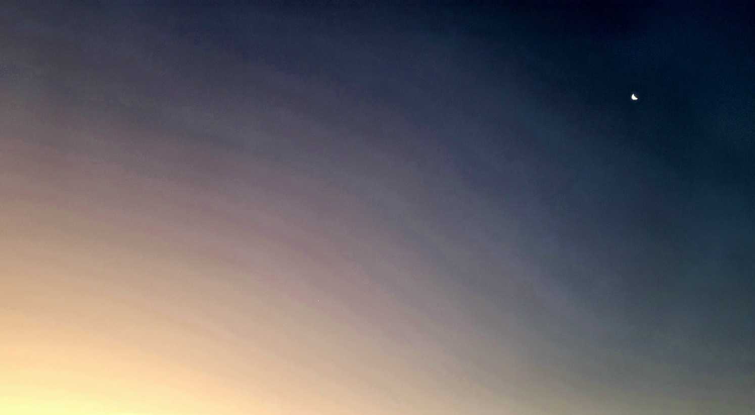 1月6日の朝焼けです。龍のような雲と真っ赤に染まった空でしたが、右側半分はまだ夜で月が出ていました。