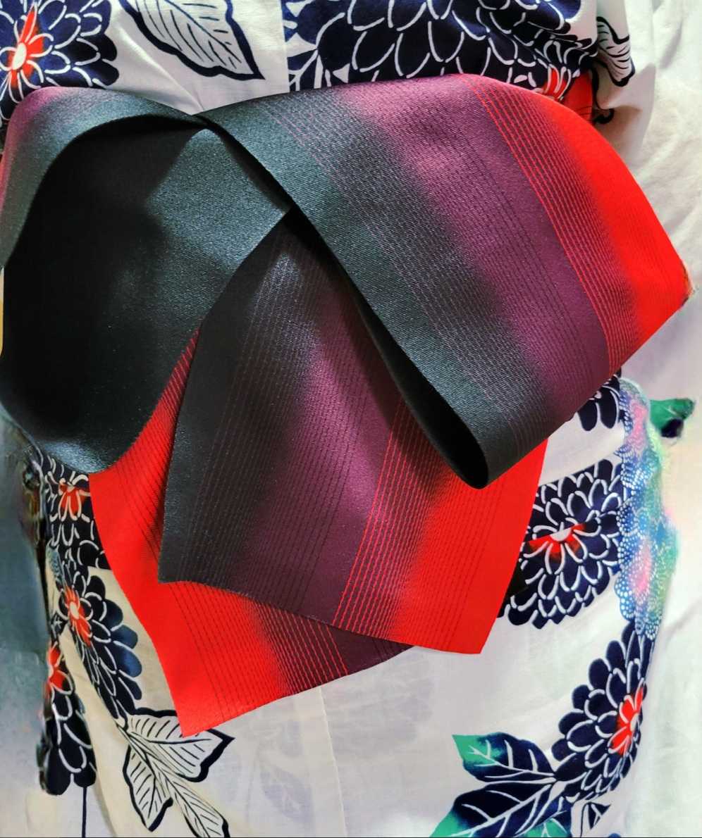 半幅帯は縛らないカルタと文庫風の掛け合わせ。