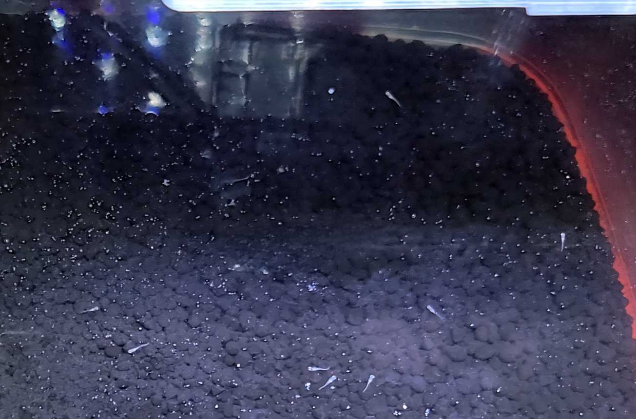 餌は稚魚用をすりつぶしていますが、もっと細かくつぶした方が良いですね。