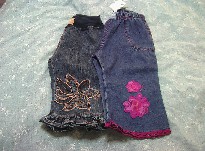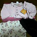 GYMは無事今朝受け取りました♪でも、目新しい物もないので、先に先日のGAPからupします。と言っても、ビデオカメラ受け取ったけど、結局直ってないんです~。いつか直るんだろうか。。。そういうわけで、携帯画像でごめんなさい。 1枚目が欲しかったどんぐりさんマント(1400円)とタイツ(各300円)です。裏地がかわいくて、これと同じ柄のボディが欲しかったんですが、完売でした(泣)タイツのお尻にも大きくどんぐりさんが編みこまれています。ハイハイした時可愛いだろうな♪2枚目が、夫が絶対買うと離さなかったケープ(1400円)とパンツ(1400円)です。3枚目は、パンツの刺繍のup。とっても凝っていてかわいいんです。ウエスト部分やボタンまで可愛くて、買って正解でした。4枚目は、定価6200円が1400円という驚きのジャケット(コート?)です。裏地が花柄、背中側にも刺繍があって、そでにはハートボタン、裏地の腰の辺りにチロリアンテープと、あちらこちらに技ありです。暖かそうだし、デニムだから汚れをきにせず気軽に羽織れそうです。以上6点でした。家に帰ってよくよく見てみると、デニムパンツが一番気に入ったかも。すごく凝っていて、いろんなお洋服にも合わせやすそうで、重宝しそう♪写真に写ってませんが、ウエスト部分もチロリアンテープが付けられていて、さらにハート柄のボタンがついています。もしまだ売っていればおすすめです☆