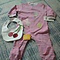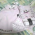 今回はスルーと思っていたけれど、いざ出てみると、NBのSweets for the Sweetは、結構私好み・・・。定価で頑張って買うほどではないけど、でも25%オフならとか、考えてしまいます。今すぐ必要なわけでもないし、それなら30%オフ待った方がいいですよね。わかってはいるけど、心が動いてしまうのでした。できれば、これから購入するGYMは、もう今年用よりは、底値になった物を来年用に欲しいと思っています。少なくとも、今先物買いしている秋冬のお洋服たちは、保育園仕様ではないと思うし、保育園に定価物はもったいないので。でも、結局OPとかJSKとか、スルーできないんだろうな。。。ところで、先日オクでGYMのチェリーのスタイを見かけて、ついつい落札してしまいました。ついでにカーターズのカバーオールも。 私がGYMを知った時、既にこのラインは、ほとんど残っておらず、帽子とロンパースなど数枚だけ、セールとオクでgetしていました。とってもかわいくて大好きなので、本当は欲しい物いっぱいあるんですが、私が見ている楽天やビッダーズではなかなか出ないので、スタイだけでもと思って。思ったとおり、とってもかわいかったです♪(どちらかというと裏の総柄の方が好き。)ついでだったカーターズも、動物さんのアップリケがとってもかわいかったです^^