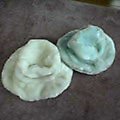 以前、送料無料の時に初めてオーダーしたforgetさん。アメリカ限定と書いていなかったこともあり、国内送料分だけは割り引いてくれたというお話もあったので、どうなるかなあと思っていたら、バッチリ23ドル取られてしまいました。やっぱり最初の買い物では、そこまでしてくれないかあ。今forgetさんで、結構欲しい物あるんですが、私が買おうとしている物は、まだセールが進まなかったこともあり、もう少し見送ろうと思います。海外向けにも、国内向けと同じようにサービスして欲しいなあ。ところで、シャンティーさんで自分用まで買ってしまったサンプル帽子、無事到着しました。サイズも、私はバッチリです☆娘のは、当然のことながら大きいですが。12mで54センチって、どう考えても大きいですよね?娘がブルー、私が白です。ものすごく大きいはずですが、かぶせると思ったほどではないです。でも、ひももないし簡単に脱げるので、娘のは当分はお預けかな。でも、とってもかわいいので、他の色も欲しいくらいです♪サンプルは、もうほとんど残っていませんが。