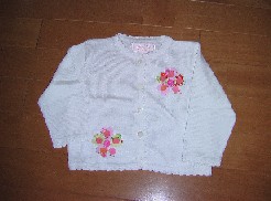 Forgetさんで、普通に他の商品といっしょに注文していたら、実はまだ入荷していない商品で、後送になってしまっていたカーディガン、ようやく到着しました。実は、いくつか追加もお願いしたのだけれど、それも含めて無料発送\(^^)/よかった~。それならもう一つくらいお願いすればよかったわ。欠品もあって量が減っていただけに、惜しいことをしたと思いますが、買いすぎずに済んでよかったと思うことにします。最近憧れの品々をオークション他あちらこちらで探し求めていて、少々買いすぎなので^^;待ち遠しかったクルーズのカーディガンの画像です。 お花のアップリケがとってもかわいかったです(*^^*)しかし、娘に18mは、まだ早かったかも。。。12mでは来秋もダメかもしれないしと18mにしてしまったけれど、意外とこのカーディガン、肩幅ありそうです。まだ着せてませんが、ちょっと厳しそう。細身の娘にはまだ12mでよかったかな~。物によって肩幅がだいぶ違うから、サイズ選びは難しいですね(><)その他追加物たちは、憧れの品々が到着してから、まとめてupしたいと思います。もうすぐ憧れのJJのHSやLULUのリボンローズが届くので、楽しみです♪この分では、GYMのクーポン配布始まっても参戦できないかもなあ^^;新作も出て気になることこの上ないけれど、もう少し様子を見ようかしら。