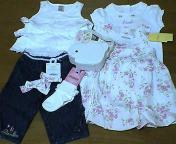 みなさまご心配ありがとうございました。おかげさまで、娘の熱も下がり、あとはぼつぼつがひくのを待つだけです水疱瘡なので、治癒証明がでるまで保育園にはいけないのがつらいところですが、今週は夫と交代で休んで、なんとか乗り切りたいと思います。さて、届いたもののあけられずにいたジプシーローズ。娘も元気いっぱい遊んでいるので、ちょっと開いてみることに。ドレスが18m、お帽子が9-12mです。 (写真とってはいるのですが、またつながらなくなってしまって^^; 今ゆっくり考えている時間もないので、forgetさんの画像を拝借です。)思ったとおりのかわいさで大満足この形のドレスは初めてですが、フリル具合がかわいくて気に入りました。お帽子も、ひとめぼれだっただけあって、かわいいただ、サイズがかなり小さめのようで、頭も小さいはずの娘でも今ジャストっぽい。夏までは大丈夫だと思うけれど、18-24mでもよかったなあと思いました。ティファニーの3-6mも大丈夫だというのに、不思議な感じです。早く試着させたいのだけれど、さすがにお洋服は、薬がついてしまうので無理完治したら、試着してもらおうと思います。