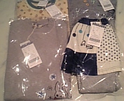 いまさらですが、先日クリスマスプレゼントを買うついでに買ったので、画像載せておきます。袋のままでみにくくてすみません。ほしかったうさぎちゃん雪だるまのトレーナーが入っていてうれしいスカッツもとってもかわいかったです。 あとは長袖が2枚でした。細かいところが凝っていてかわいかったです。スカッツとトレーナーの2枚が3千円ちょっと、長袖2枚は2千円台前半と後半でしたので、約束の10500円以上は、軽くクリアしていたと思います。みなさんがおっしゃっていたとおり、全体的にグレーっぽい感じで、地味目ですが、我が家は保育園用なので、汚れが目立ちにくそうでいいかな。プチジャム、手にするのは初めてですが、シンプルでかわいい感じのブランドですよね。素材もよさそうだし、保育園用に枚数ほしいときにはいいかもしれません。特にトレーナーなんかは、今よく使っているGYMではないのでいいかも。ビケットなんかとも雰囲気的に近いものがあります。細かいところがこっているのでかわいいです。ナカムラさんの福袋は、いつも安心して買えるのですきです^-^もうとっくに売り切れですが、ナカムラさんはひっそりと追加していることがあるので、まだまだチャンスはあるかも??私はまだセラフがほしかったりします^^;
