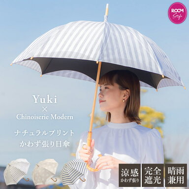 おしゃれです!😊🍀🍀🍀「ROOMコラボ」 <br> 日傘 長日傘 長傘 かわず張り 晴雨兼用 UVカット 完全遮光 日傘 遮熱 <br> Yukiさん監修「スタイリッシュかわず張り長日傘」<br>涼しい ボーダー柄 晴雨兼用 日傘 ギフト Yuki ドキ子 <br>