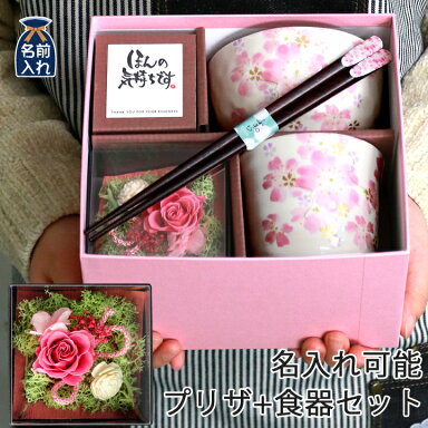桜大好き!送料無料 名入れ プレゼント ギフト 美濃焼 和藍 華まつり 桜 お茶碗&湯呑&お箸&プリザーブドフラワー | 花 プリザ 茶碗 おしゃれ 茶わん 母 お母さん 女性 義母 祖母 還暦祝い ご飯茶碗 ごはん茶碗 お箸 贈り物 施設 誕生日 和食器 食器 あす楽