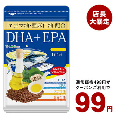お安くなっています!クーポンで99円★DHA+EPA オメガ3系α-リノレン酸 亜麻仁油 約1ヵ月分 サプリ サプリメント 健康 オメガ3 リノレン酸 えごま油 亜麻仁油 ドコサヘキサエン酸 ロズマリン酸 ルテオリン