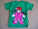 スウの幼稚園で、縦割り保育の時に着るお揃いのTシャツ。背中のデコレーションが完成しました!昨年の公開保育で、みんな凝ったTシャツ着てるな~と嫌な予感はしていたのですけど、やっぱり指令がきました。。。園側で人型のスタンプを押してくれるので、顔を描いたり布を貼ったり、自由にデコレーションして下さいと。手芸全般苦手、デザインのセンスゼロの私でも、やらない訳にはいきません図書館で参考になりそうな本を借りて、スウの希望の「ピンクのドレスに結んだ長い髪、帽子をかぶった女の子」に決定。夜な夜な少しづつチクチクやって、ようやく出来上がりました(^^)vスウも喜んでくれたし、私も達成感が。縫い目はガタガタだけどね。大切に着てね。でも、お洗濯に耐えられるか、ちょっと心配。
