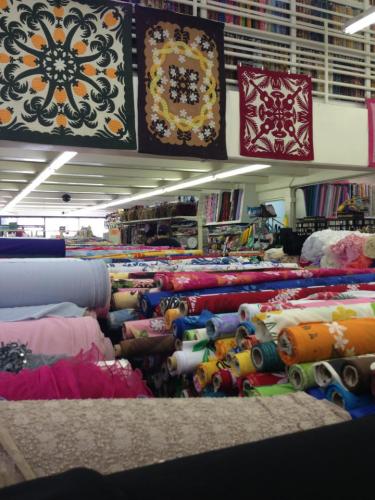 ワイキキに一番近いドンキホーテの近くにファブリック・マートという布やさんがありますハワイアン・プリントは大量にあります1階だけでもすごいけど、2階もあってすごい布の量ですその上お値段がとってもお安いです私は日本にいるとき、ここから布を仕入れてました日本へも郵送してくれます。サイトはこちら↓Fabric Mart (英語)で、今回10年以上ぶりにお店に入りました黒いスカートがほしくて、でも私のサイズがなかなか無かったりあったら超ミニで、これはおばはんが着ると公害でしょう、みたいだったりなので黒い布と裏地を買いにいってきました1ヤード(約90センチ)づつ買ったけれど、幅広なので、2枚作れそうですそれで昨日はミシンを出して1枚縫ったのだけれど伸縮性のある布を選んだので(楽チンスカートがいいなと思って)きちんとしつけせず、マチ針を打っただけで縫ったらえらくツレてしまいましたでも黒だからわかりにくい(笑)今日のもう一枚は、きちんとしつけしてから縫います~ところで昨日、お店に日本人カップルも来ていて彼氏に「選んで♪」と布を選んでもらって布を買ってもらって「ありがとう♪」というかわいい二人がいたのですが「でもさ、前に買った布も縫わないでまだ部屋に置いたままだよね」なんて彼氏が言い出しし~ん、彼女、無視。っていう笑えるシーンがありました私も日本では実はパウスカートを販売しようと思って10万円分の布を購入しいろんな生地でほぼ同時進行でパウを縫い進め同時に販売用ホームページにもとりかかりはじめあまりに疲れて途中でやめてしまった、ということがありましたなのでその彼氏の言葉は、痛いとこつくね!みたいな、人事でなくて笑いそうになっちゃって背中を向けちゃったそのパウスカート完成前の未完成パウは、今うちで、間に合わせのカーテンや目隠しに使用されてます。再利用、再利用あの10万円があれば、と今になって切実に思うワタシです