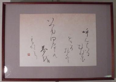 私の友人には公務員が何人かいるのですが、そのうちの一人から、先日聞いた話。厚生労働省が発行している国家資格には色々なものがありますが(たとえば医師とか、看護師とか)、いわゆる「お免状」には、発行時点の大臣や、厚労省の局長さん等の署名が入る。今回の組閣はどうなるかわかりませんが、とにかくそんなことで、大臣が代わると書類の変更が大変らしいです。…が、今回のメインテーマはそこではなく「署名」そのものの方。大事な免状ですから、当然文面は格式高く明朝の毛筆体、そして署名は、ご本人が筆で書いたものがプリントされるようなのですが…これが、哀しいほど下手っぴぃだったりするらしい(笑)彼女が言うには、「何年もかけて勉強して、試験に合格してやっと取った免許なのに、こんな小学生の書初めみたいな署名か??って思われるんじゃないかって、渡すときにドキドキしてしまう」くらい、すごいレベルの人もいるとか…大臣はまだマシだけど、お役人のレベルは本当にひどい。出世するつもりなら習字の練習もちゃんとしておけ!!というのが、彼女の言い分らしい。そういえば、以前、友人の結婚式で受付の係を務めたとき、新郎側の来賓で当時の現役大臣がいらして、芳名帳にそれはそれは見事な達筆で署名されていったのを思い出しました。(私なんて、そういうシチュエーションで、サインペンではなく毛筆をお選びになる時点で、もう尊敬の眼差し!!です)でも、たかだか数十年前の日本人にとっては当たり前のことだった「書道の心得」も、今では一般的な教養やたしなみのうちには入らなくなってしまいましたものね。文字の魅力は、巧いヘタより、究極は「その人の持ち味があるかどうか」だと思うのですよ。ただ、オフィシャルな場で筆を握らなければいけない人には、やっぱり美しい楷書を書いてもらいたい、という気もいたします。小学校の教育現場では「ゆとり教育」の反省から「読み書きそろばん」の復権も叫ばれているらしいですが…この際、中途半端にヘタな英語なんか教えるよりは、お習字の時間を増やした方が、大人になっても役立つスキルになるかも??で、昨日のニュースで、皇族譜に悠仁親王のお名前を書き込まれていた宮内庁の羽毛田長官は、さすがの達筆でいらっしゃいました(笑)実は、数年前にちょっとだけかな書道をかじったことがあります…PCのデータを整理していたら、以前書いた作品の写真が出てきました。心静かに墨をする時間って、とっても気分が落ち着いて大好きでした。しかし、かな書道の「上手い・下手」は、未だにどう判断するのかよくわからない(笑)