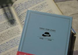 初めて日記帳を買ってもらったのは、確か小学三年生の時だったと思います。それ以来、途中何年もの中断はありながらも、長い間日記をつけてきました。と言っても、私の場合の日記は「備忘録」的なもので、どこへ行った、誰と会った、何を食べた…そんな事ばかり、淡々と綴るだけの簡単なもの。それでも、記録に残さなければ、思い出すきっかけさえ失ってしまうようなささやかな出来事が、日記帳の中にはちゃんと残っていて、うれしくなることもあります。何しろ、思い出を留める力は私の脳から年々失われているようですので…(涙)7年前の年の暮れ、ふと書店で見かけたのが「五年日記」でした。「2000年問題」で大騒ぎした1年が終わろうとして、さぁ新世紀の到来だ!というフレーズがあちこちで飛び交っていた頃のことです。そうか、来年は21世紀なんだ。21世紀から始まる日記をつけてみてもいいかな。そんな風に思いついたのがきっかけで、2001年の元旦から書き始めた日記帳。無事に一冊目が終わり、今年からはちょっとハードルを下げて(笑)「三年日記」に移行しました。【シンプルな高橋書店のものを使っています。殆ど走り書きで、すさまじい乱筆!】この「○年日記」、私の知人でも持っている人がちらほら。つけ始めてみるとわかるのですが、続けているうちに「ちょうど1年前はこんな日だったんだ」と振り返るのが、なかなか面白く、感慨深いのです。ブログとはまた一味違った、この日記帳ならではの楽しみがあるわけで♪しかし、そうして時系列で遡ってみると、自分も含めて、人の心や世の中の流れがいかに移ろいやすく、過去をあっさりと忘れてしまうかということにも驚かされます。21世紀最初の9月11日、衝撃的な同時多発テロが起きました。そして、五年日記の最後となった去年の9月11日…この日、衆院選の投票日だったんですね。そういえば、去年の今頃は「郵政民営化」という言葉をニュースで見ない日はなかったのに。たった1年前のことが、呆れるほど遠く薄いものになってしまうのは、人の世の常なのか。もちろん、前を向いて、未来へ未来へ…と進んでいくのは、日々を生きている私たちにとっての自然な姿なのでしょう。ただ、時折、立ち止まってふとふり返ってみたくなった時のために。これからも、この日記帳たちとは長く付き合っていきたいと思っています。