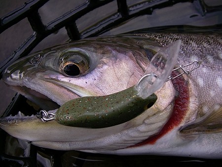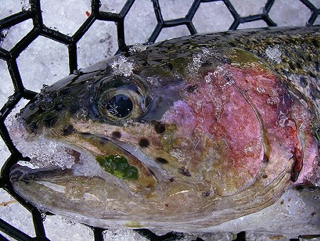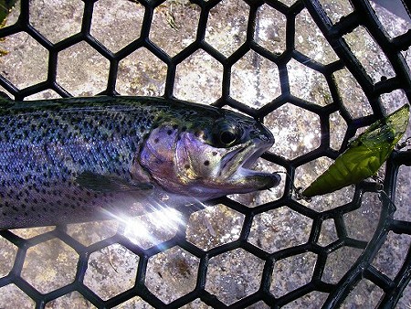 ■蝉ルアー:美蝉■管理釣り場「鱒の家」にて ☆3月2日☆撮影:PENTAX OptioW20 水生昆虫のハッチがあるので、試しに蝉ルアー、あの美蝉を使ってみました。すると、ニジマスたちが興味を示すではありませんか。ロッドをぶるぶるとシェイキングで表層に魚の注意を集め、9匹目を釣りました。今年初の美蝉での釣果です。何しろ、小生は美蝉の遣い手ですからねー。あれっつ、皆さん、ご存知でしたっけ? ←クリックしていただけると嬉しいです。撮影:PENTAX OptioW20 ‘真冬でもドライフライのトップで釣れる’というのが「鱒の家」のうりです。雪の残る時期でも、蝉で釣れるなんて、すご~い、ことですよね。「鱒の家」は湧水で、一年中水温が一定というのは本当のようです。きっと、このタイミングでは、バッタでも蝶でも良かったのでしょうが… (続く)←クリックしていただけると嬉しいです。 ■スミス 美蝉 北関東スペシャル ■SMITH スミス 美蝉 BISEN ■美蝉 ■第30回オーパー!ルアーコンテスト開催 ⇒ 4月6日(日)9:00~11:00