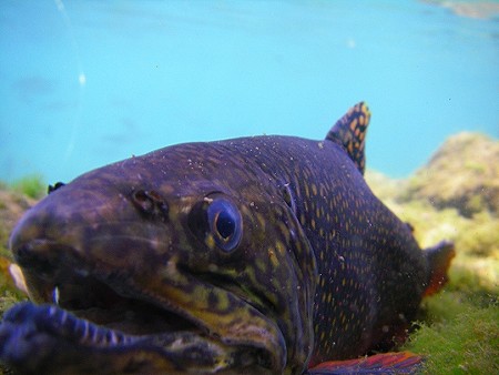 ■ブルックトラウト、水中写真■管理釣り場「鱒の家」にて ☆3月2日☆撮影:PENTAX OptioW20 これ、どうやって撮ったのか分かりますか? 水槽のガラス越しの写真じゃないのですよ。防水カメラの威力発揮の水中写真なのです。ブルックトラウトの鼻先にOptioW20を水中に沈めて、片手で撮りました。天気が良くて水の中は明るく、南国の海のように綺麗なブルーに写っていました。そのブルーの背景に他の魚たちも小さく写っています。春の陽気とは言え、人には水は冷たく、このブルックトラウトを撮影後、手が氷のようになって、ロッド操作が上手くできなくなってしまいました。 ←クリックしていただけると嬉しいです。撮影:PENTAX OptioW20 モデルにしたブルックトラウトは、大人しくて、撮影に協力的でした。実は、この魚、小生に釣られて、ちょっと元気が無くなっていたのです。この後、あわてて勢いよく水底に潜っていきましたから、命に別状はありませんでしたよ。他の管理釣り場のポンドで、これほどクリアに写ったことがありません(オーパー!なら可能かも。魚が釣れれば、ですが)。昨夏の裏磐梯の秋元湖でも、スモールマウスバスが、ぼやけてしか写りませんでした。「鱒の家」の水は、釣り人にも魚にも、恐ろしいほど無防備に透明なのです。←クリックしていただけると嬉しいです。水中撮影の時はカメラのモニターを見ることができませんので、マニュアルフォーカスにして、魚にカメラを向けて勘で撮っています。ピントが目玉に合うのは奇跡的だし、フレームの中に魚が入ることは滅多にありません。それでもOptioW20はレンズがボディーの中央なので、こういう撮り方の場合はレンズがボディーの隅にあるオリンパスのミューSW・シリーズよりは扱いやすいかもしれません。自分も魚と一緒に水に潜れば撮影は楽なのですがね~ (続く)。■第30回オーパー!ルアーコンテスト開催 ⇒ 4月6日(日)9:00~11:00 ■PENTAX Optio W30 ■Optio W30 シルバー【送料無料】 ■オリンパス μ1030SW メタルブラック ■オリンパス μ1030SW メタルグリーン