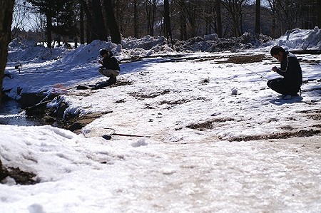 ■東北フィッシングパークにて ☆3月9日☆撮影:KONICA MINOLTA αSweet Digital AFマクロ50mmF2.8D今日はKumaさん、Sasaさんとコーヒーカップを開催しました。東北自動車道白石インターを降りたところに白鳥の群を発見して一時停車です。 ←クリックしていただけると嬉しいです。撮影:KONICA MINOLTA αSweet Digital AFマクロ50mmF2.8D約束の時間に管理釣り場「東北フィッシングパーク」に着いたのは良いのですが…ポンドに水がない! まさか?うそー? 水がまったくないのです。釣り場のHPで見た状況では【3月9日 現在天気:晴れ 最高気温:11℃ 最低気温:3℃ 水温:7℃ 透明度: クリア】でしたが、Newsに書いてあった【2月12日~エリア改修工事 駐車場前のポンドのみ利用可能】を見逃してしまったのです。3人集合してから、すぐに缶コーヒーカップの開催場所を変更することしました。「みんなー、雪の山を上るぞ!」 さて、どこへ向かったでしょうか?(続く)←クリックしていただけると嬉しいです。■第30回オーパー!ルアーコンテスト開催 ⇒ 4月6日(日)9:00~11:00