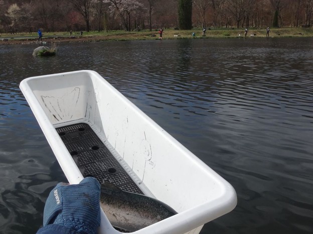 ◇2018年4月8日(日)◆那須白河フォレストスプリングスにて◇11月の前回の大会ではボウズだったSさんにヒットがありました。この1匹で半年前の屈辱を晴らすことができたようです。私も何度もボウズを経験しており、嬉しさが良く分かりました。(続く)クリックして頂けると嬉しいです。