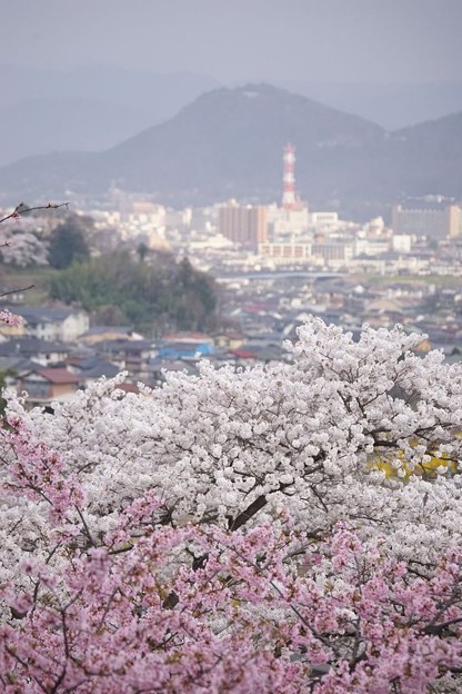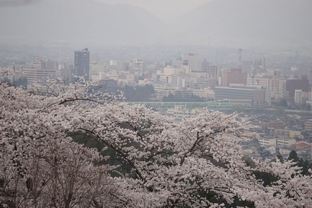 ◇2018年4月4日(水)◆福島市・花見山にて◇午前6時過ぎの時間帯は、曇り空で花に輝きがなく、さえない状況でした。仕方なく山頂付近からソメイヨシノと信夫山を撮りました。麓側を撮ったところ、人が写り込んでしまいました。後で気がついたのですが・・・ それは家内だったのです。(続く)人気ブログランキングへ クリックして頂けると嬉しいです。