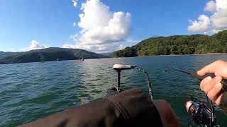 ◇2022年9月25日◇桧原湖◇レンタルボート店でバッテリーにもエレキの電気系統にも異常はない、と言われ大山祇神社鳥居前に戻りました。しかしエレキを全速力に設定しても、微風で流されてしまうほどスピードが上がりませんでした。今更、戻る気もせず、仕方なくエンジンで風上に移動し、流されながらの釣りをすることにしたのです。蛙太郎は水深6mラインのポイントで1キャスト、フリーリグにして釣りました。私の細いラインのタックルでは真似できない釣り方でした。スモールマウスバスと言っても、口が結構大きい!蛙太郎の2匹目はスモールマウスバス、全長は38cmでした。私にも、そろそろ1匹欲しいところですが・・・・(続く)バス釣りランキングクリックしていただけますと嬉しいです!