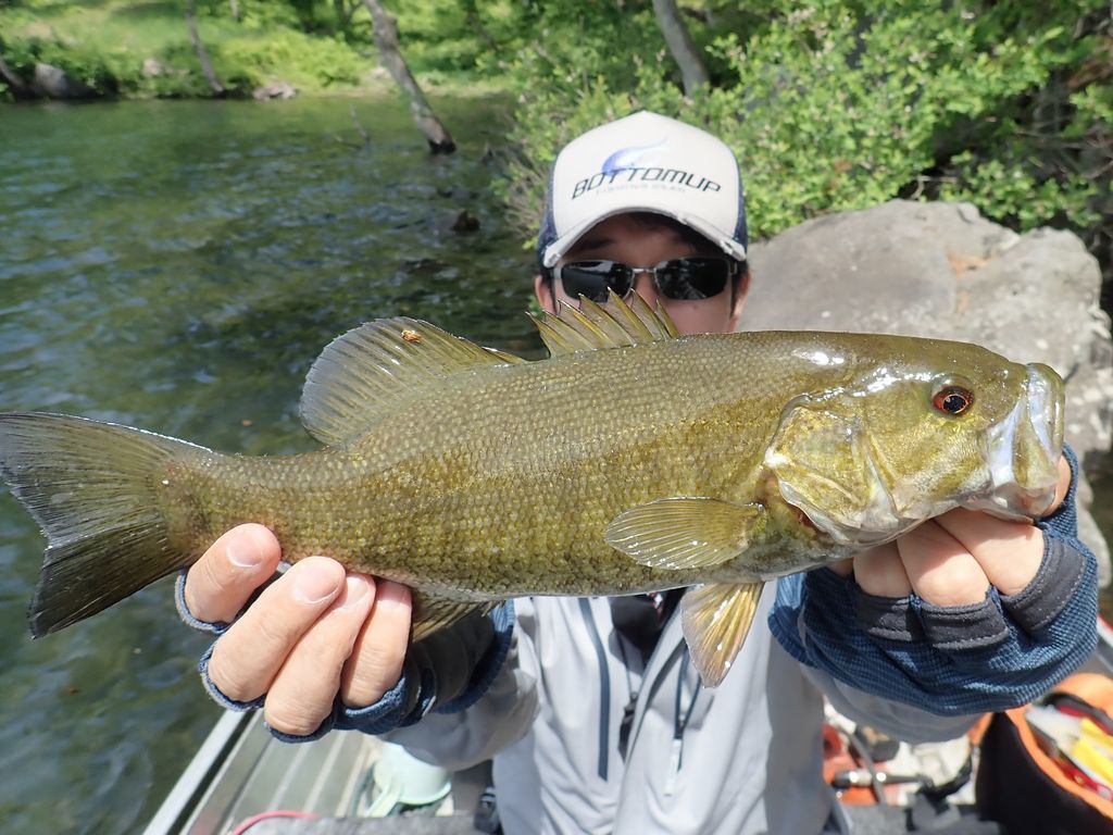 いかり潟から出た途中の岸際で、私は3匹目のスモールマウスバスを釣りました。
