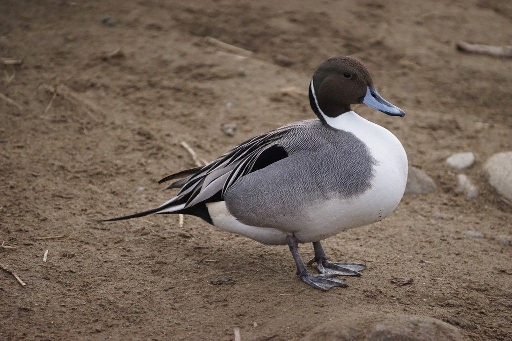 オナガガモのオス、羽が汚れていなくて綺麗です。
