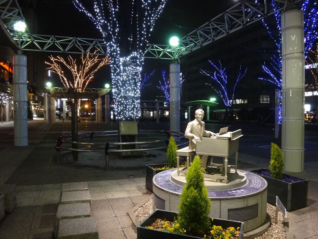 古関裕而像が迎えてくれる福島駅には夜遅く着きました。