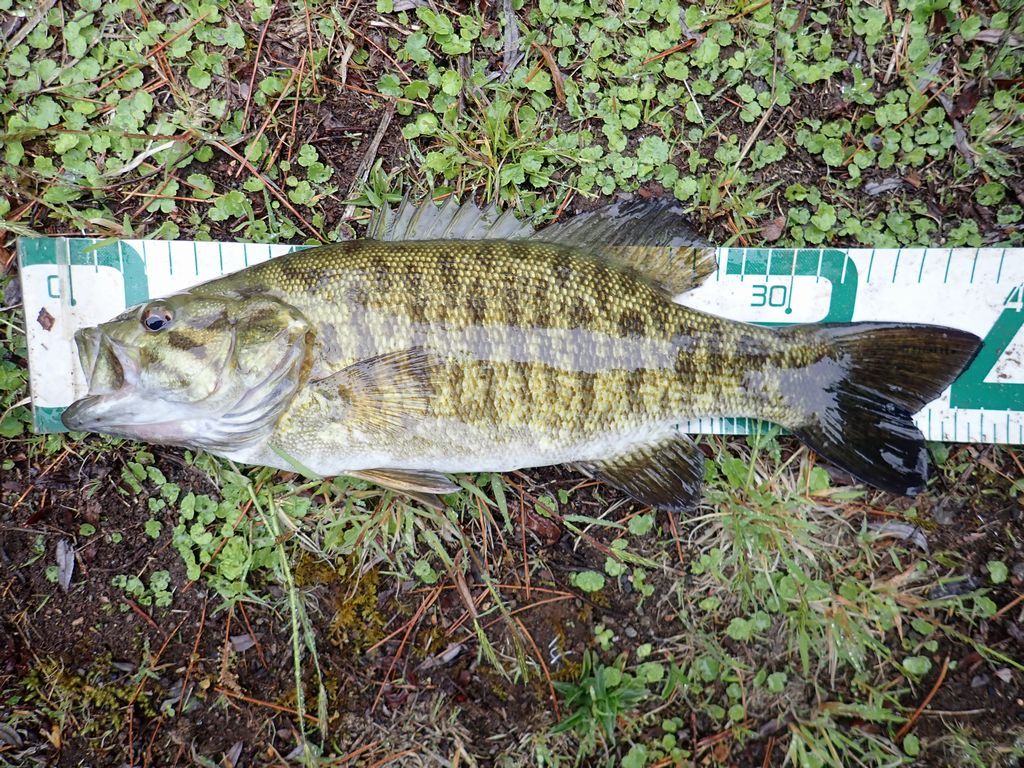 スモールマウスバス、全長37cm。1匹目と同じサイズでした。