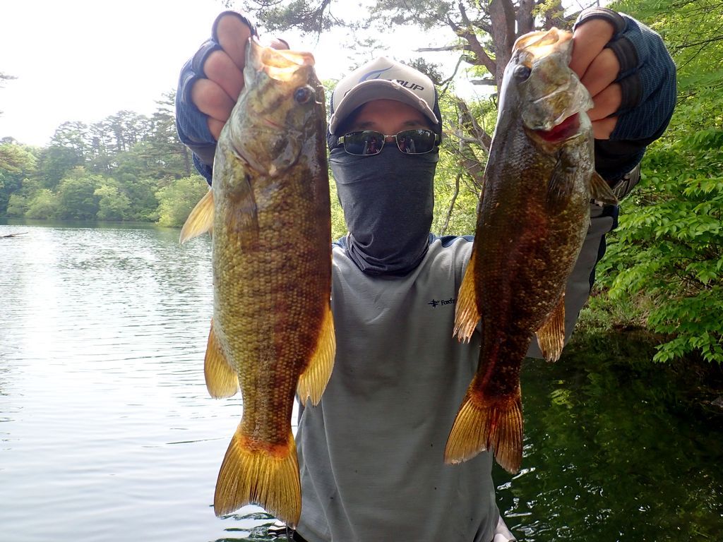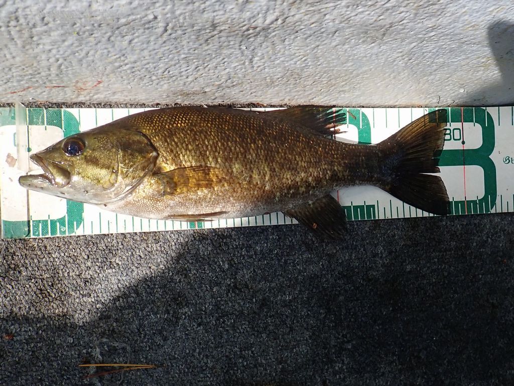 左手に持っていたのは私の8匹目、スモールマウスバス、全長28cmでした。