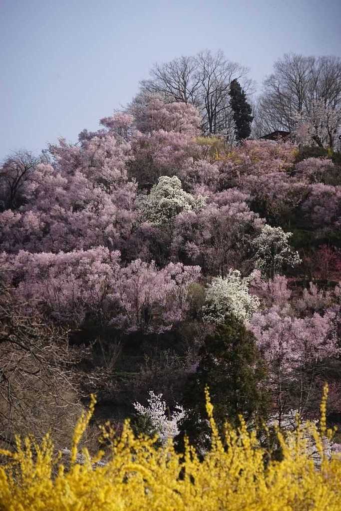 花見山を下りて山の側面に回り麓から眺めました。このビュースポットは以前に家内に教えてもらったのです。それまでこの場所の存在を私は知りませんでした。