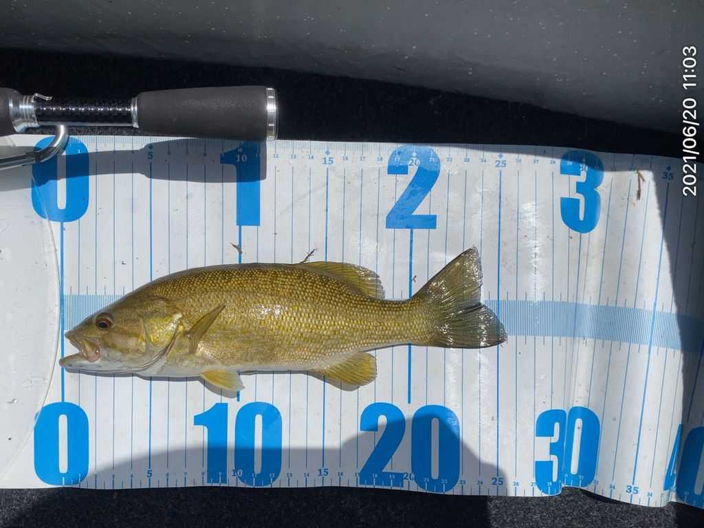 8匹目はスモールマウスバス、25cm。こんな小さい魚がこんなに引くの?この日の蛙太郎は1匹1匹丁寧に釣っていたのです。楽しんでいるのでしょうね。(続く)