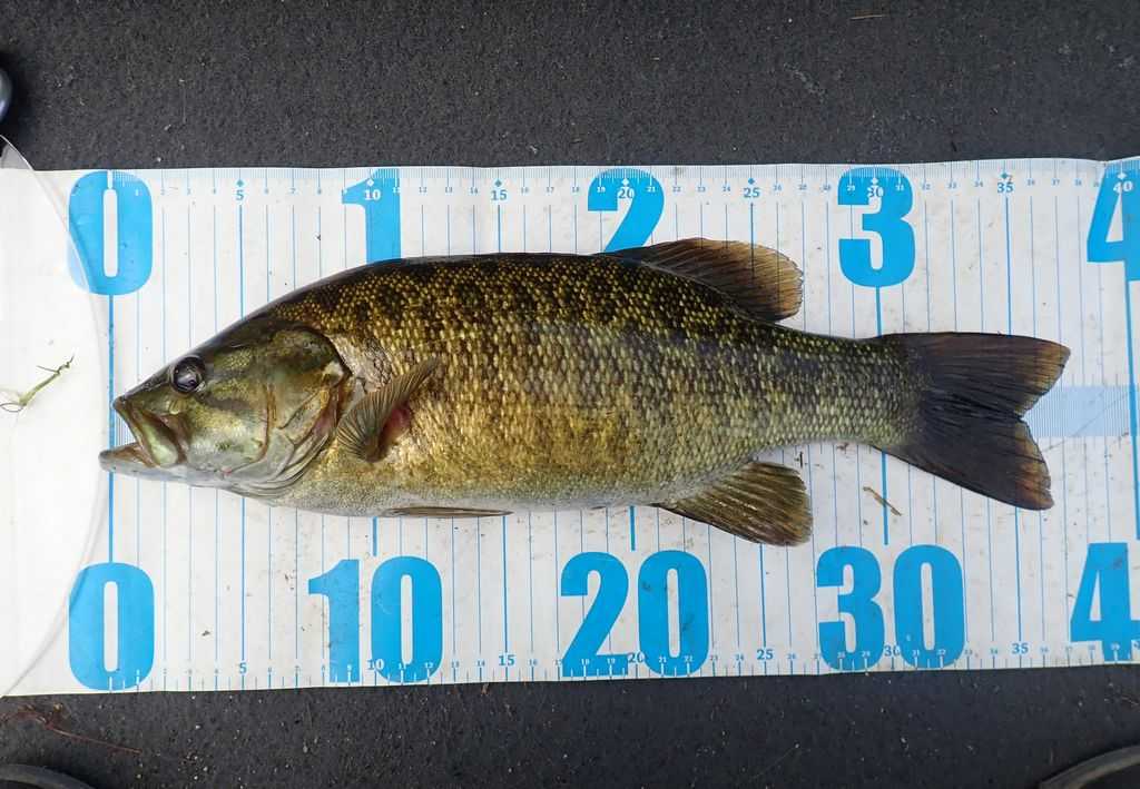 釣りを開始して3時間経ち蛙太郎がスモールマウスバスを釣りました。37cmありましたから、結構大きな魚です。