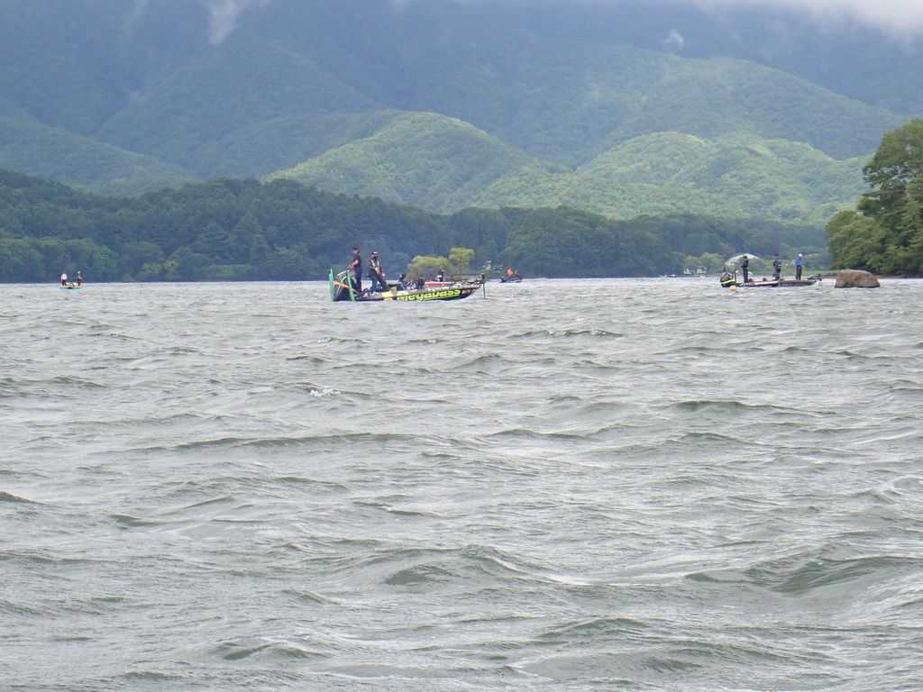 さらに風が強くなり波も高くなり、バスボートと違って安定性の低いレンタルボートでは危険な状況となりました。私が釣るまで湖上に留まろうとしてくれた蛙太郎に、私の方から「もう桟橋に戻ろう」と提案したのです。( ノД`)シクシク…