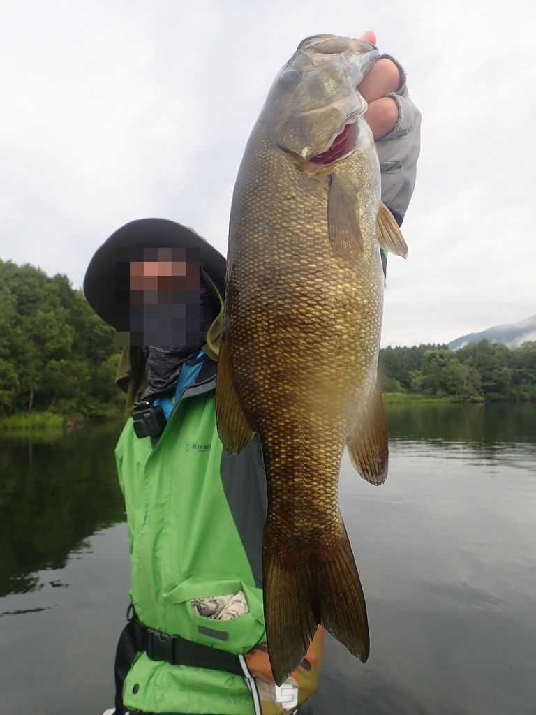 蛙太郎は1匹目にスモールマウスバス、全長38cmを釣りました。「さすが蛙太朗、なかなかやるな~」と私。この先の自分の可能性にも期待しました。