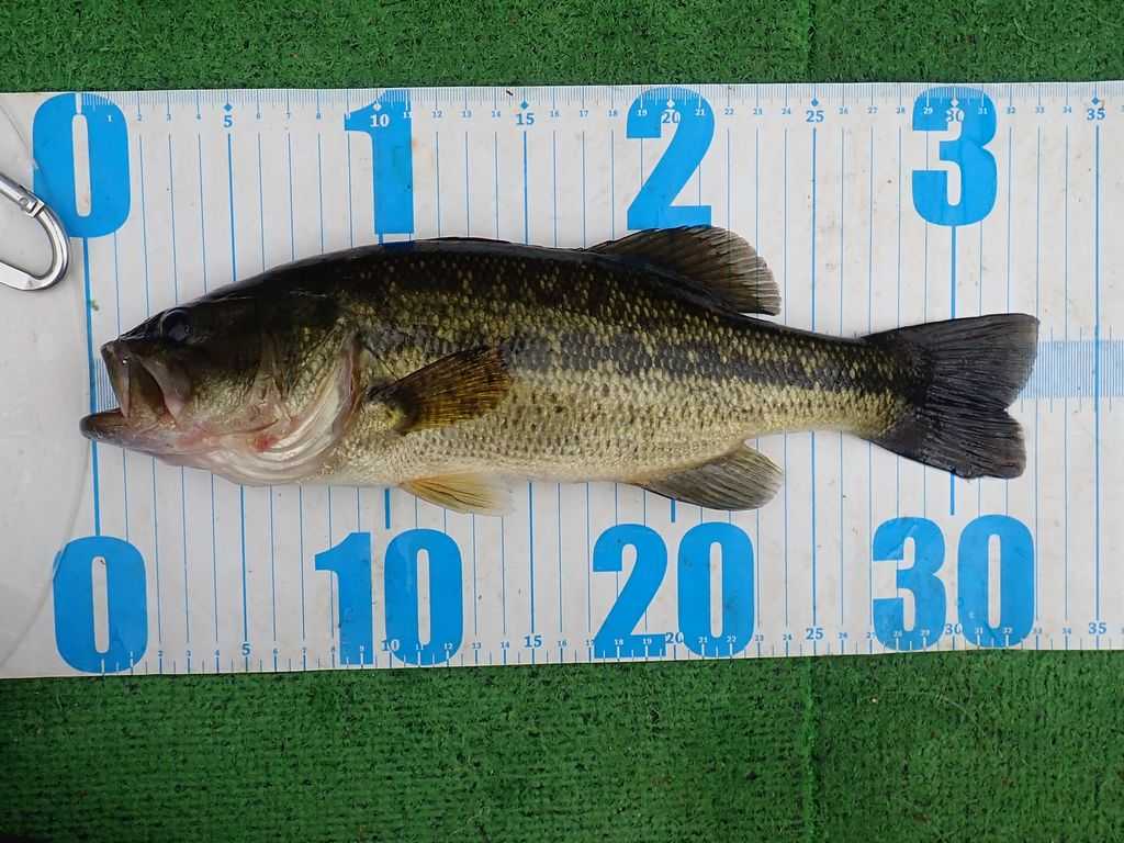 私の1匹目はラージマウスバス、全長は33cmでした。