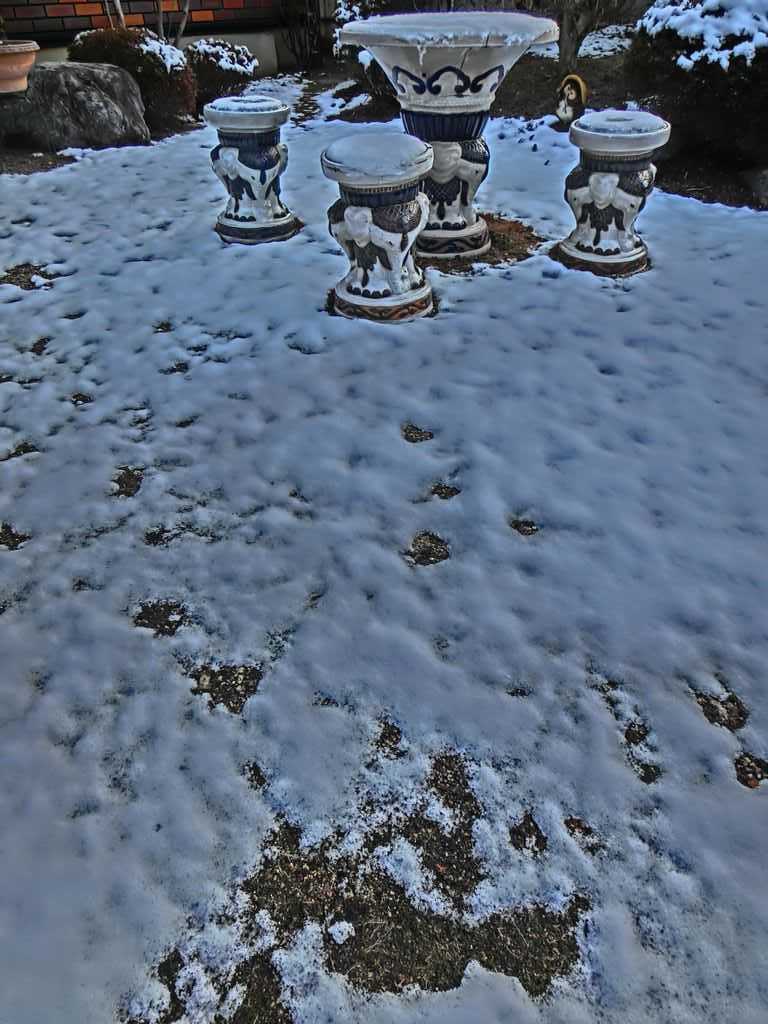 我家の庭も、また冬に逆戻りです。しょんぼり
