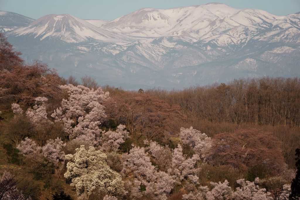 2人でほとんど同じ場所から吾妻小富士を撮りました。ソメイヨシノもボケも咲いておらず、華やかさの足りない似たような写真となりました。仕方なし。