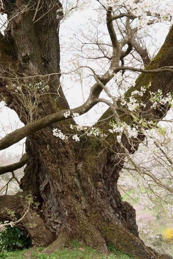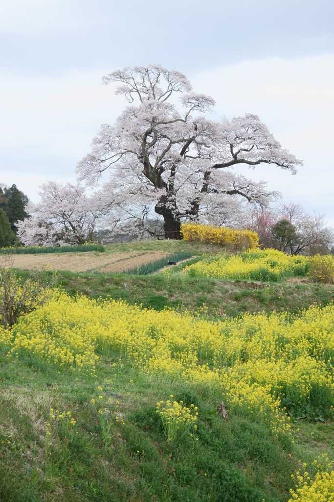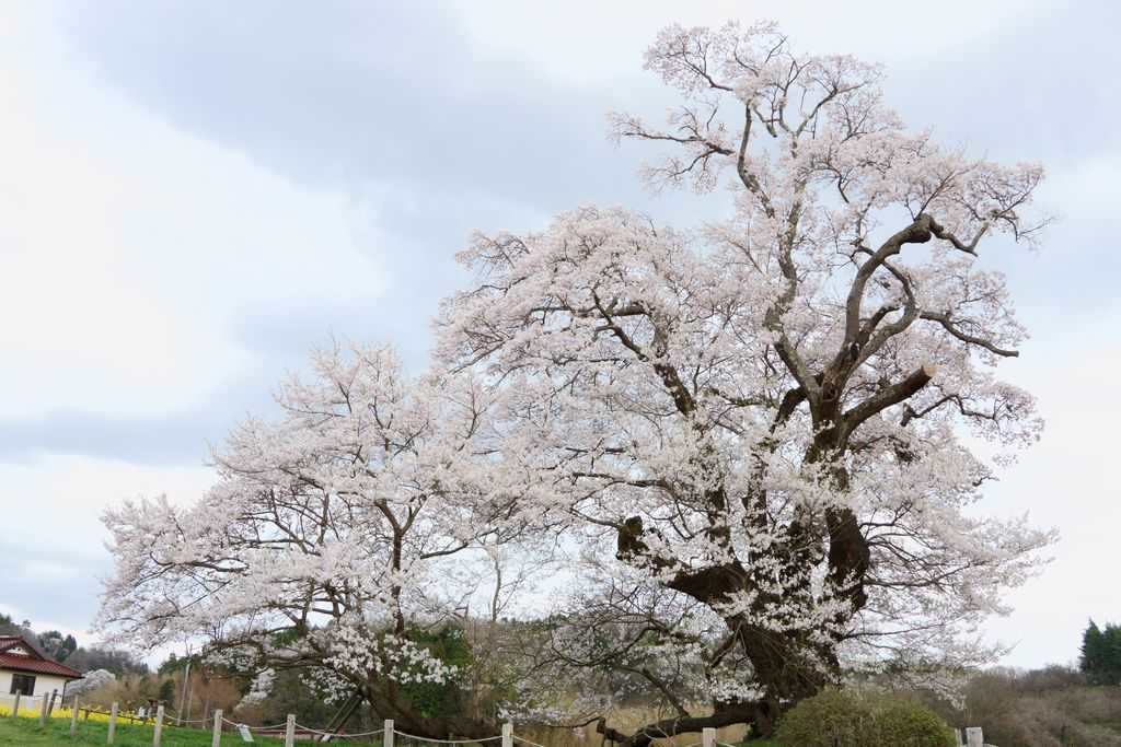 三春滝桜見物の帰路には名もない大木の綺麗な桜がたくさん咲いています。その中でも塩ノ崎の大桜は、枝ぶりが良くて気に入っています。一部の枝が折れてしまいましたが、それでも見応えがありました。2人での桜見物はこれが今年最後です。